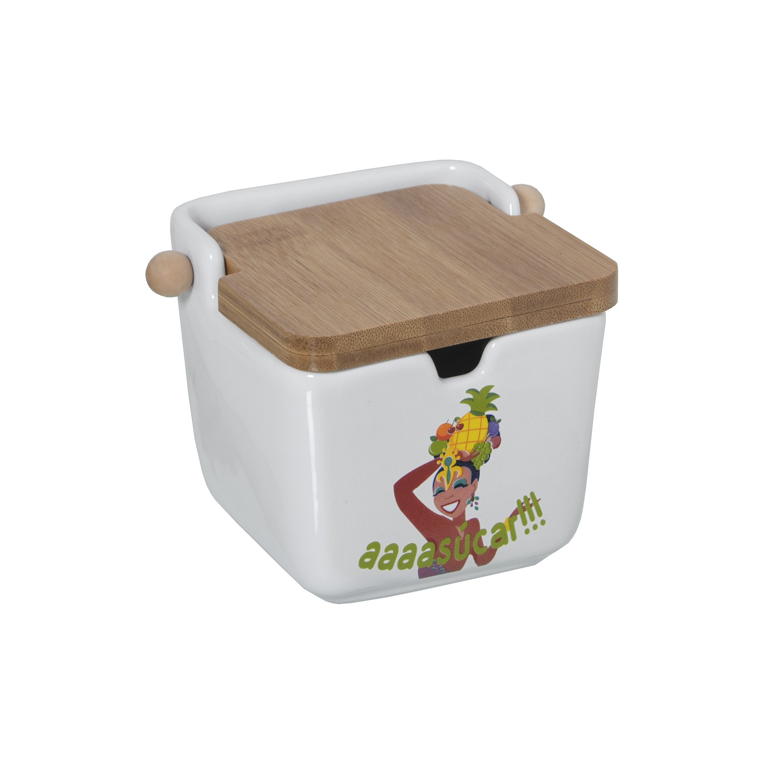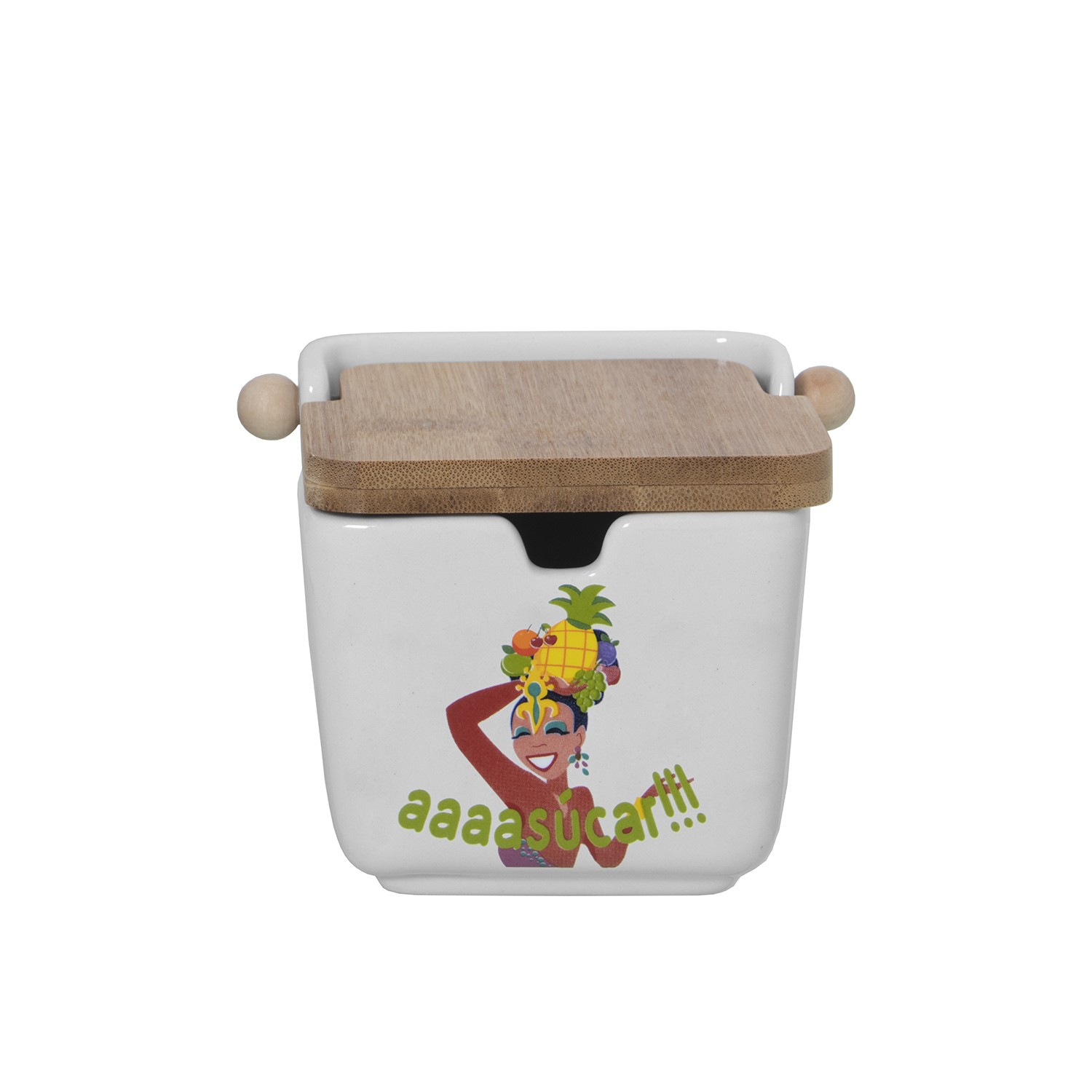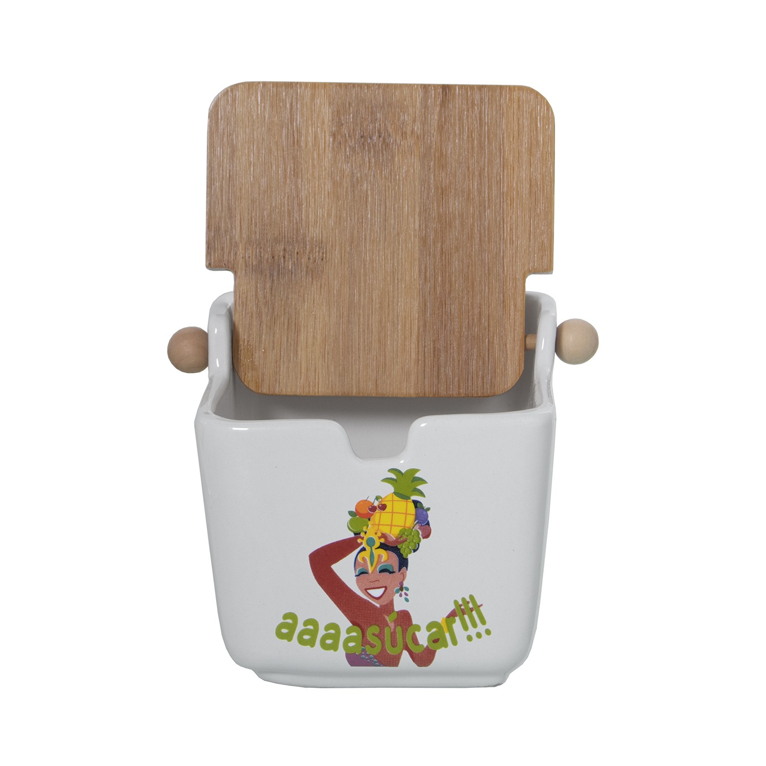 » Ceramic Sugar Bowls With Wooden Lid -aaaasúcar- 8,5x8,5x8,5cm