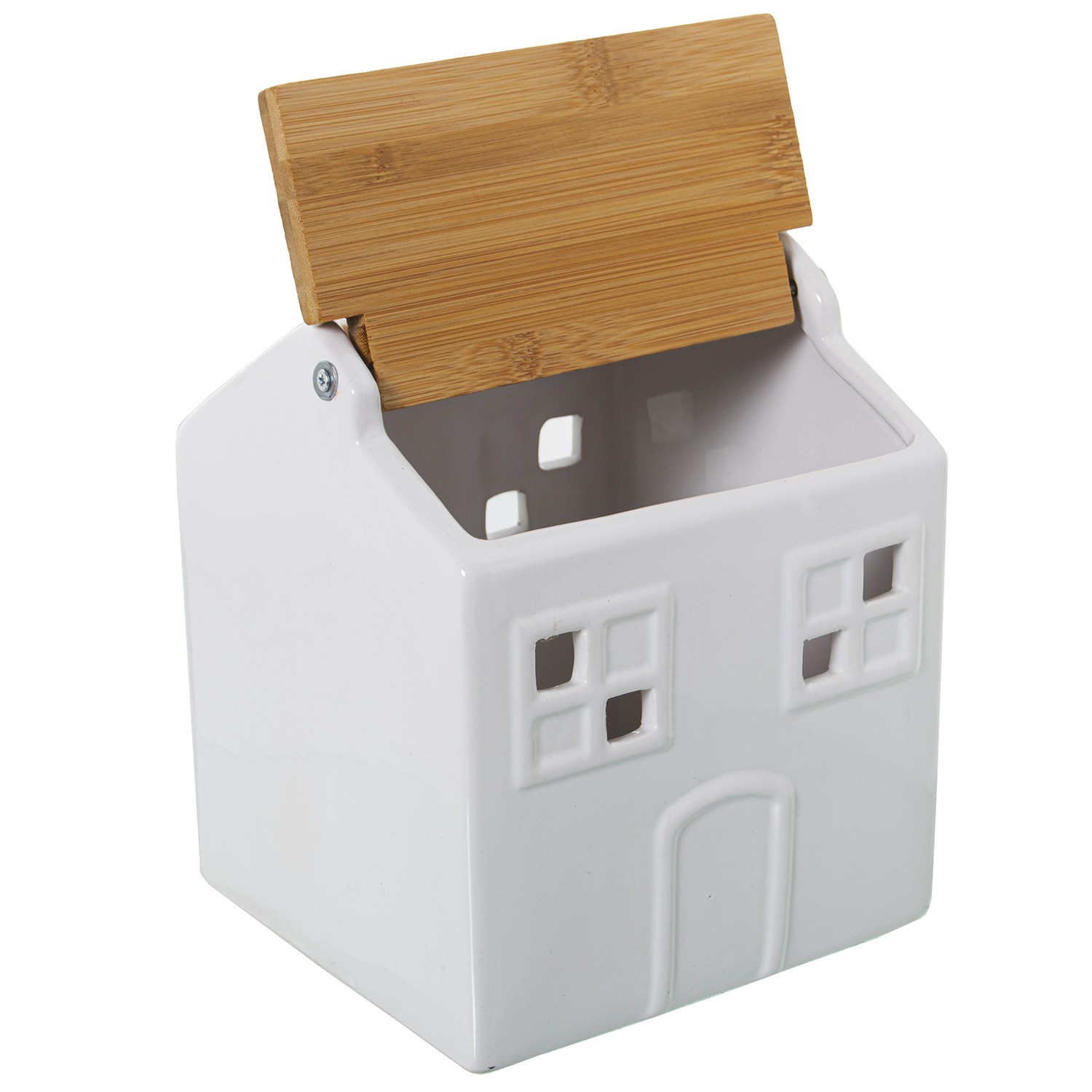 White Ceramic Sugar Cellar With Bamboo Lid 10x8x11cm