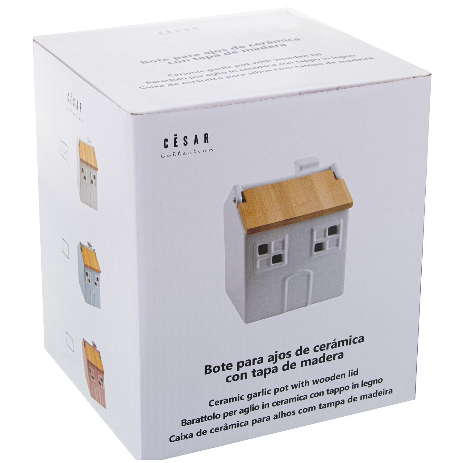 » White Ceramic Garlic Jar With Bamboo Wooden Lid 16x15x19cm