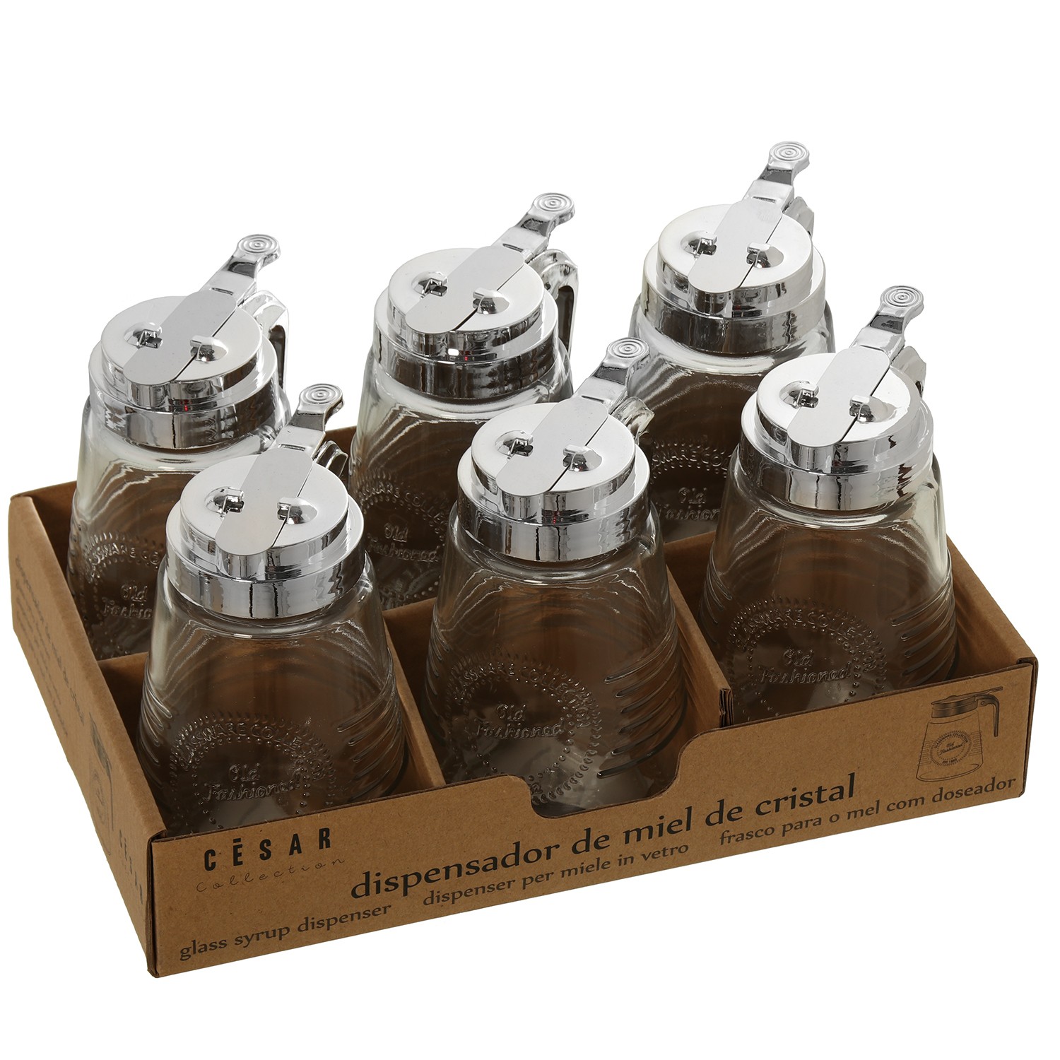 » Honey And Syrup Glass Dispensers _ø8x19cm-display:26,5x17,5x5cm