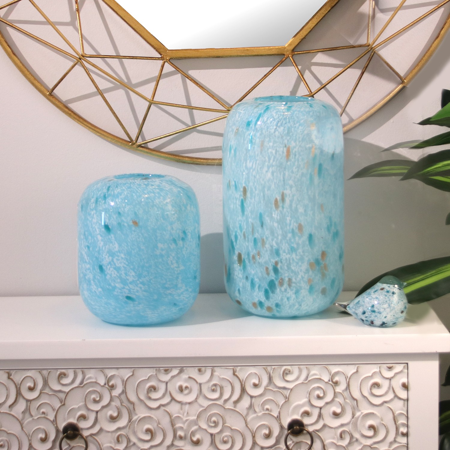 Light Blue Mottled Glass Vase- Ø19x34cm
