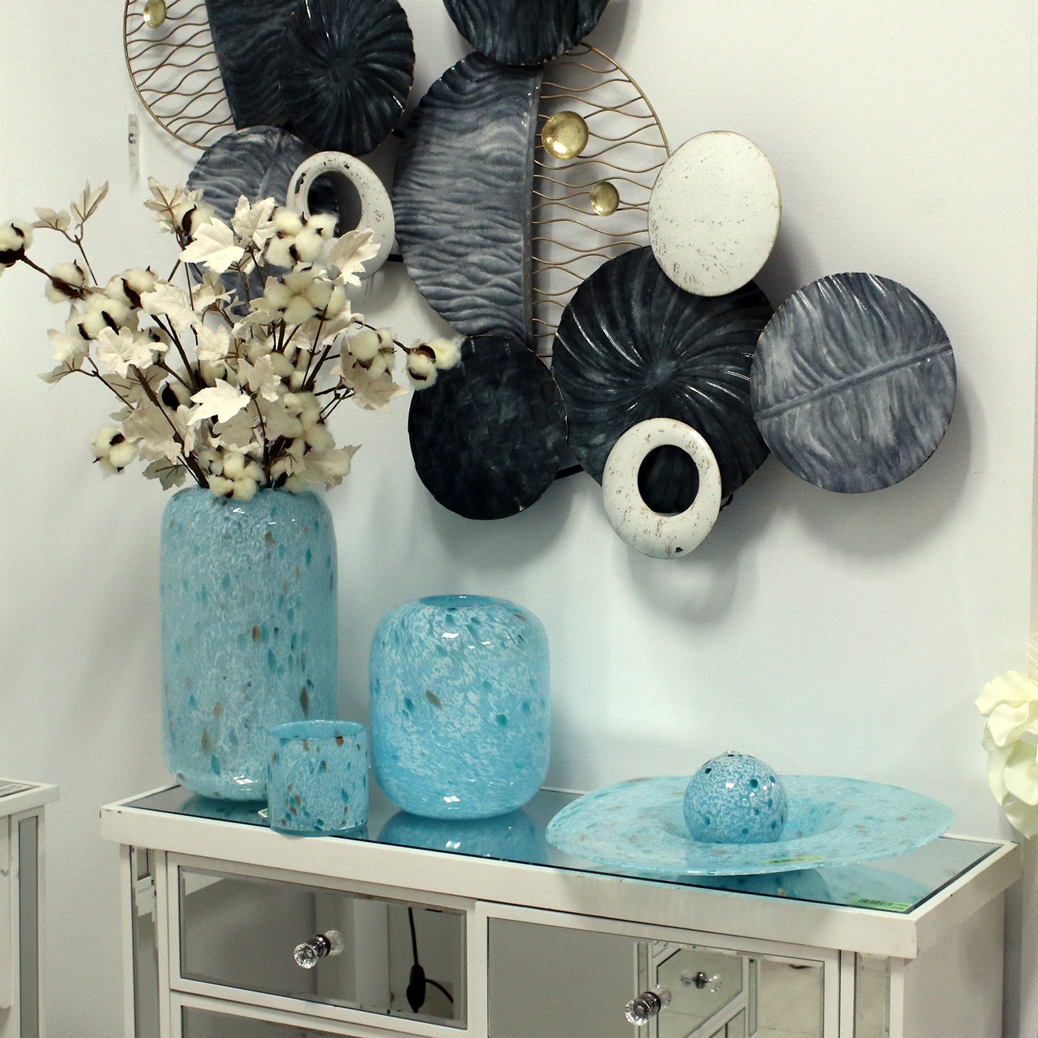 Light Blue Mottled Glass Vase- Ø19x21cm