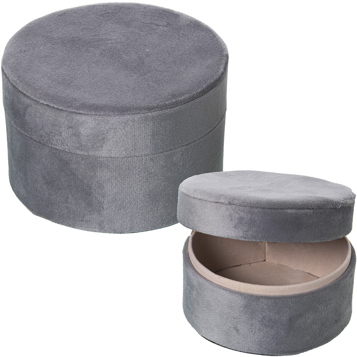 Set 2 Gris Velvet Jewelry Boxes- Ø13x9cm+ø10x7cm
