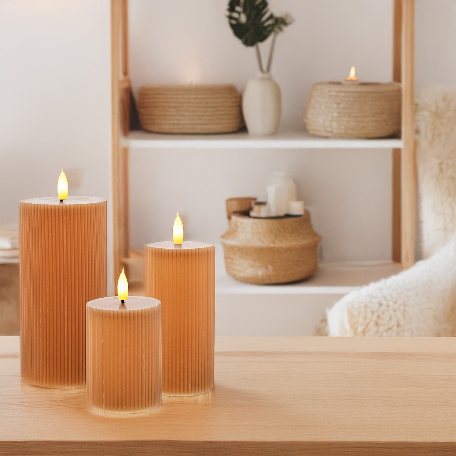 » Caramel Led Wax Candle (1 Control For Each 4 Candles)_ø7,5x15cm, Batteries:2xaa Not Included