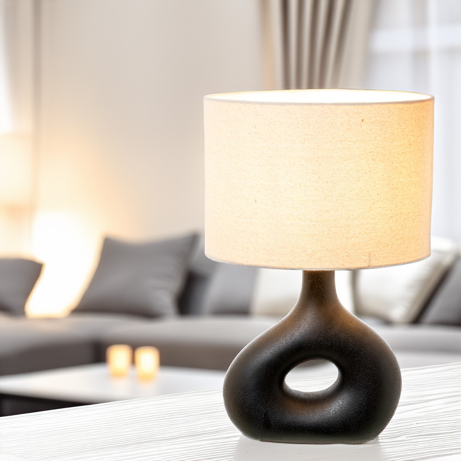 Black Ceramic Table Lamp Ø32x50cm Base:26x9,5x26,5cm 1xe27 Max.40w, Bulb Not Included