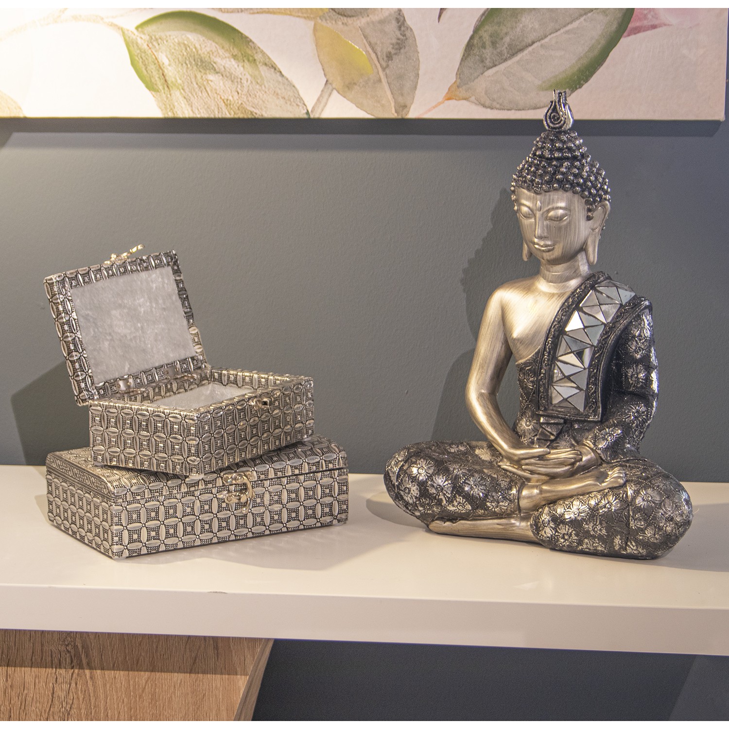 Silver And Black Resin Figure - Buddha- _25x14x35cm