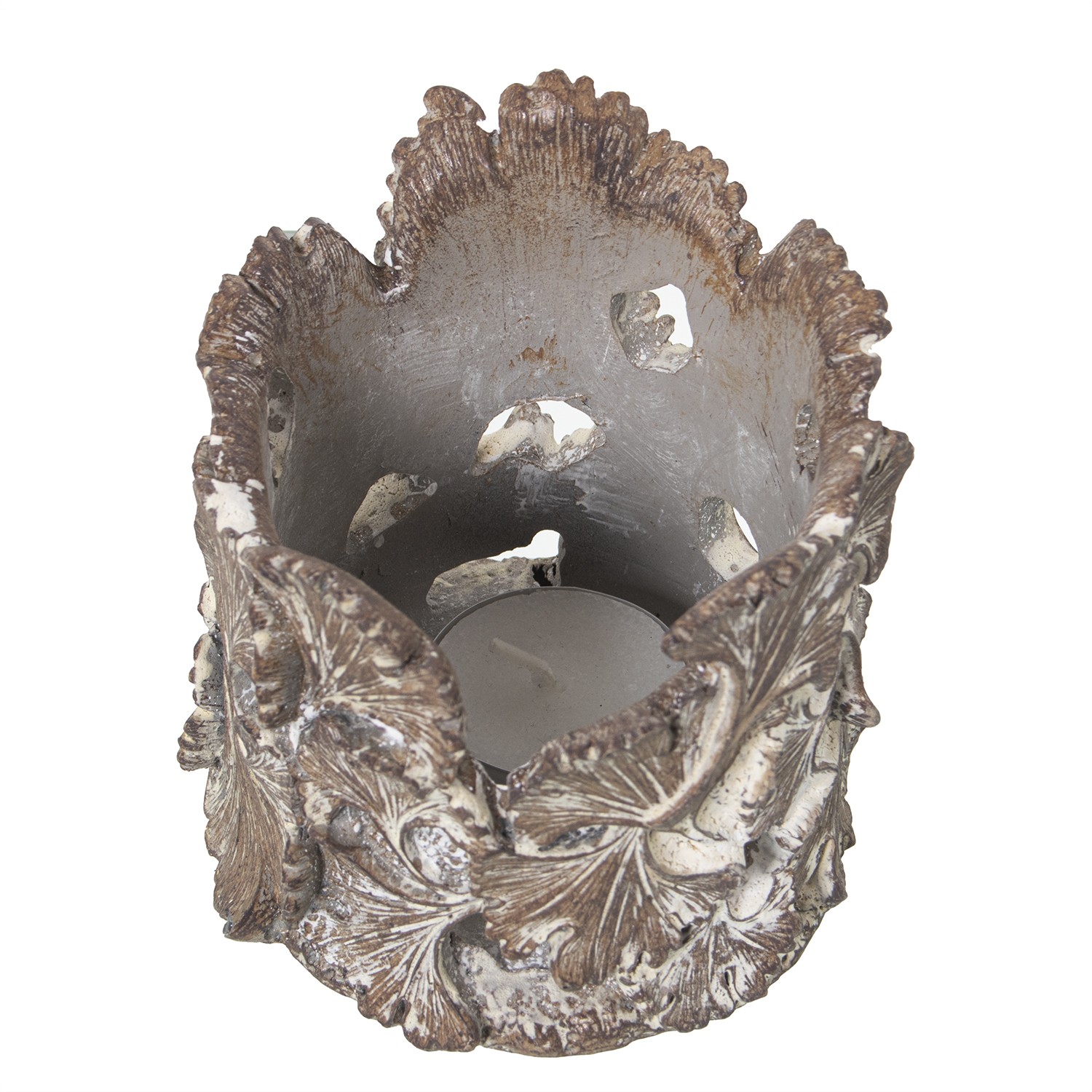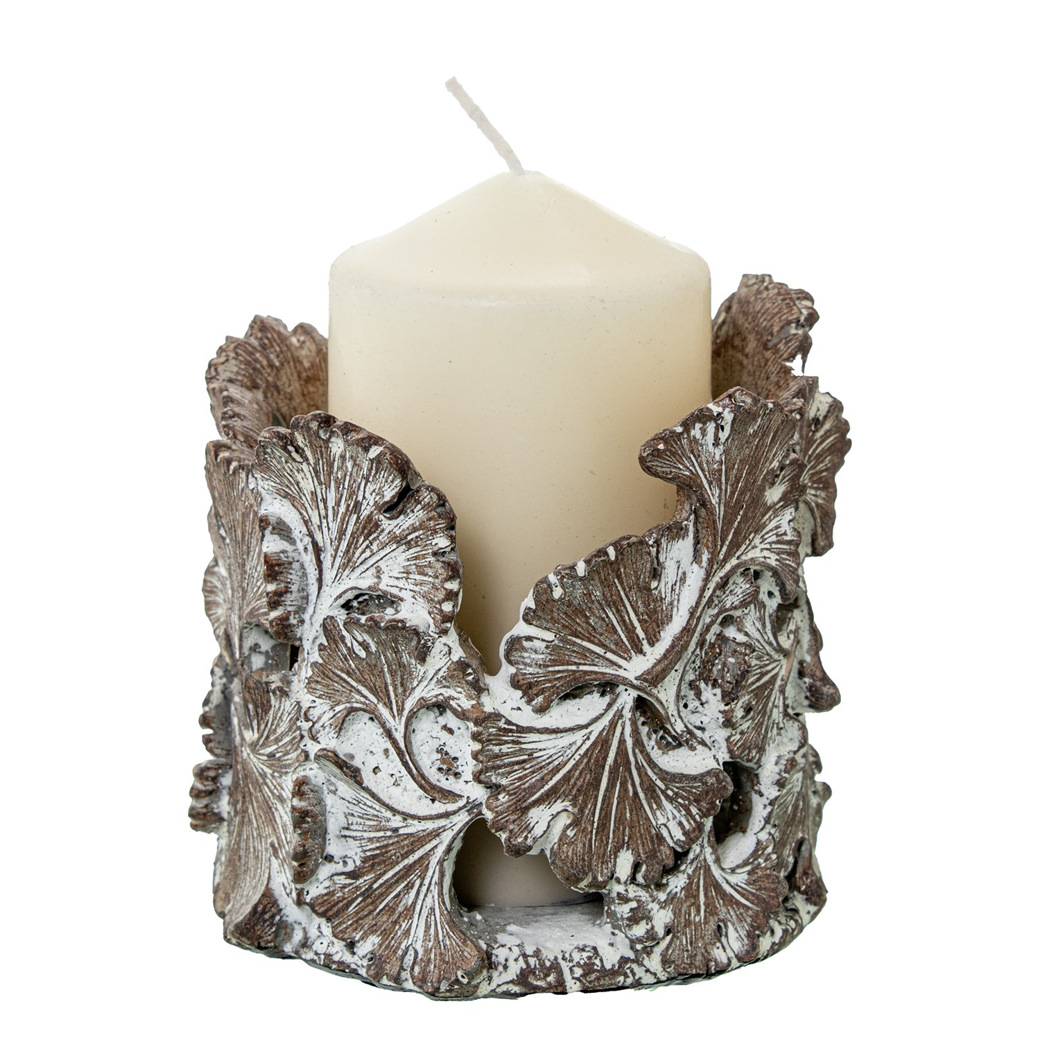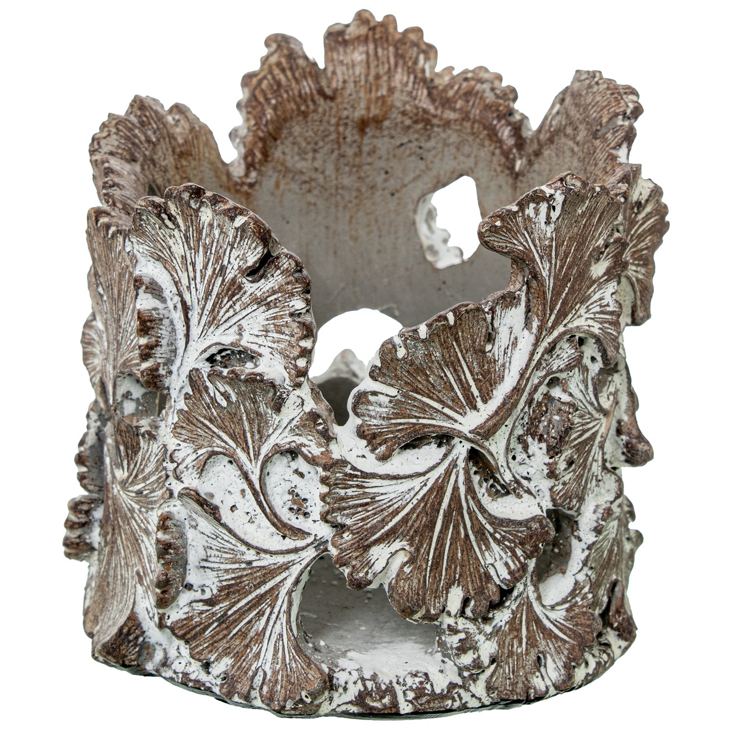 Brown Pickled Resin Candle Holder- 10x10x10cm