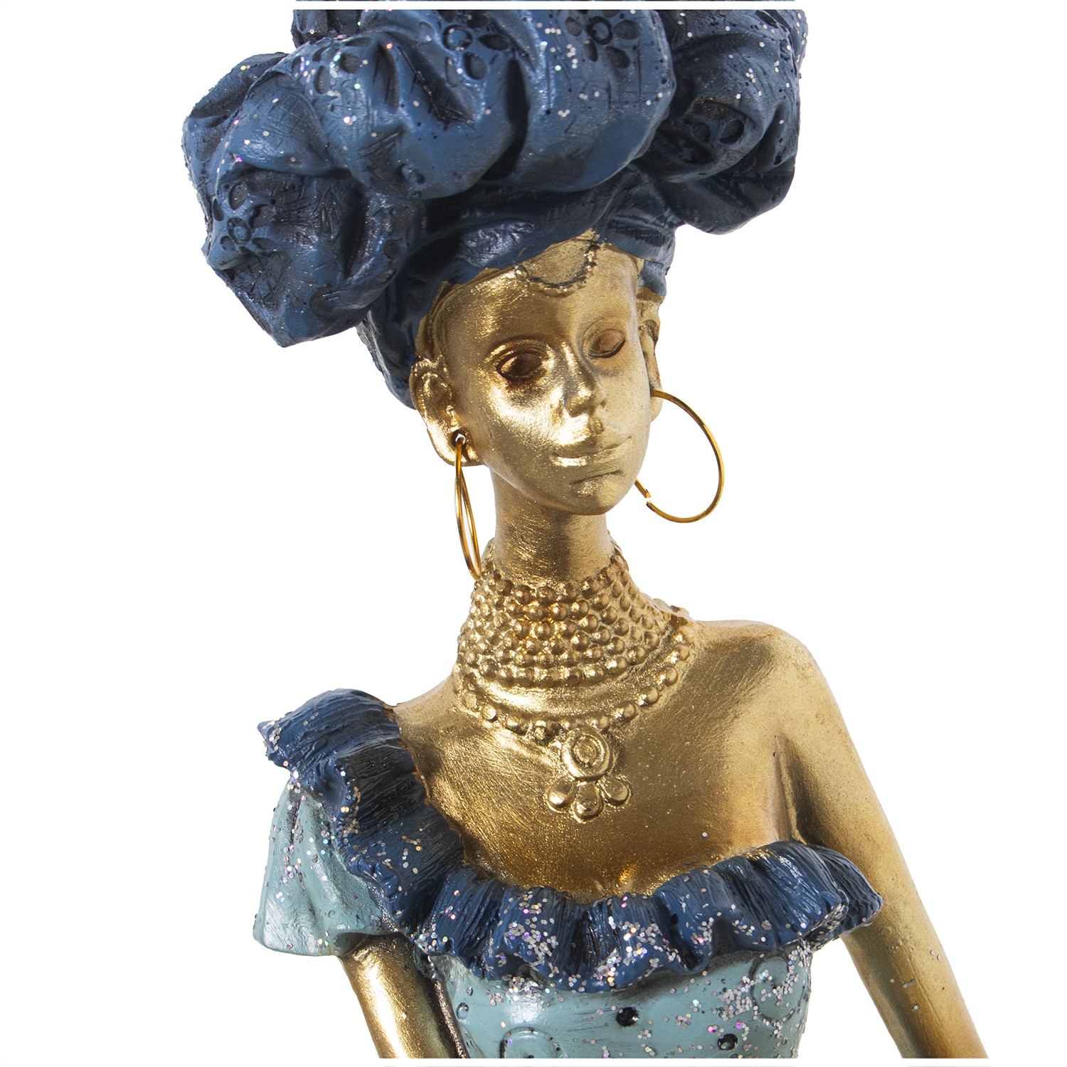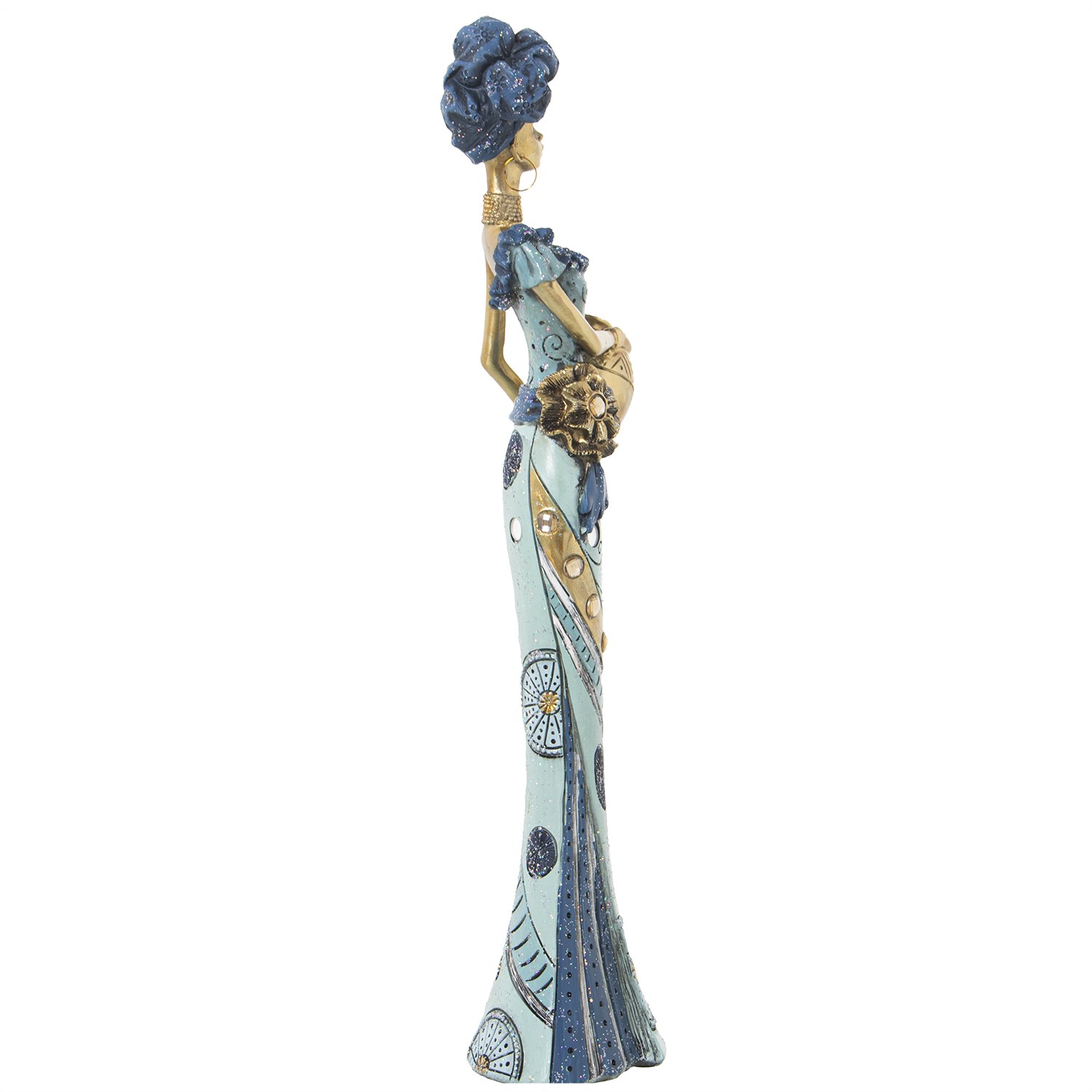 » Blue And Golden Resin African Figure- 14x9x46cm