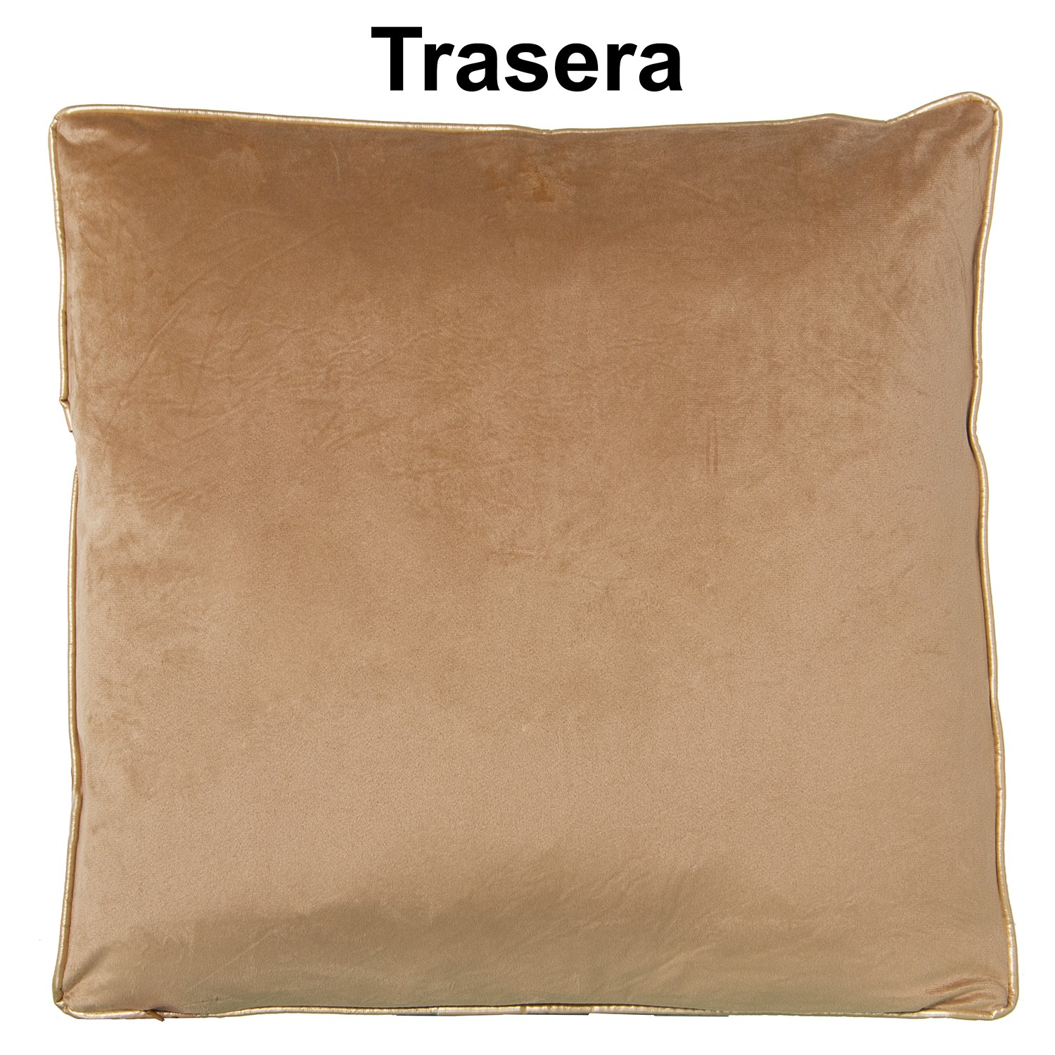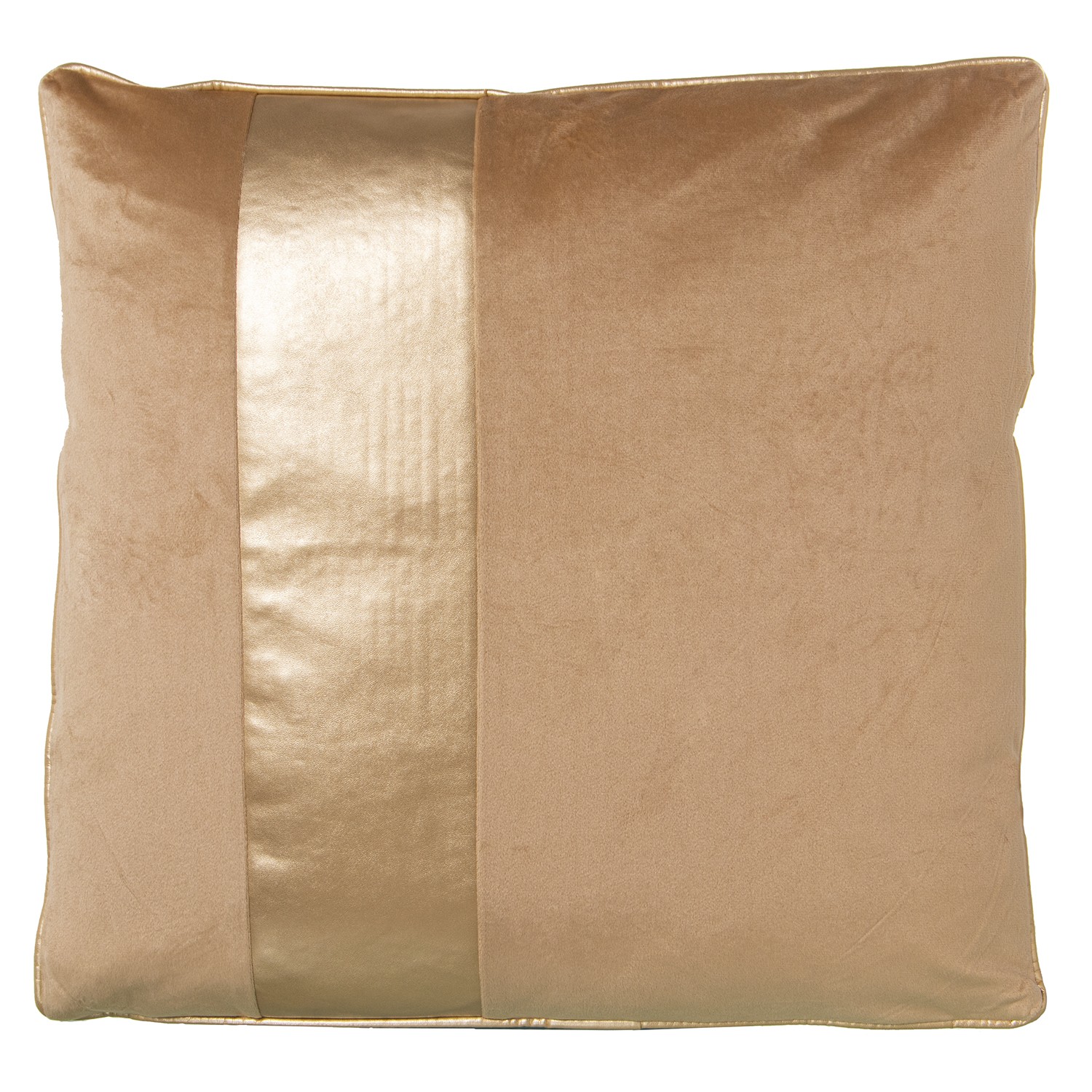 » Beige Velvet And Golden Strip Pillow With Zip - 45x45cm- 45x45cm