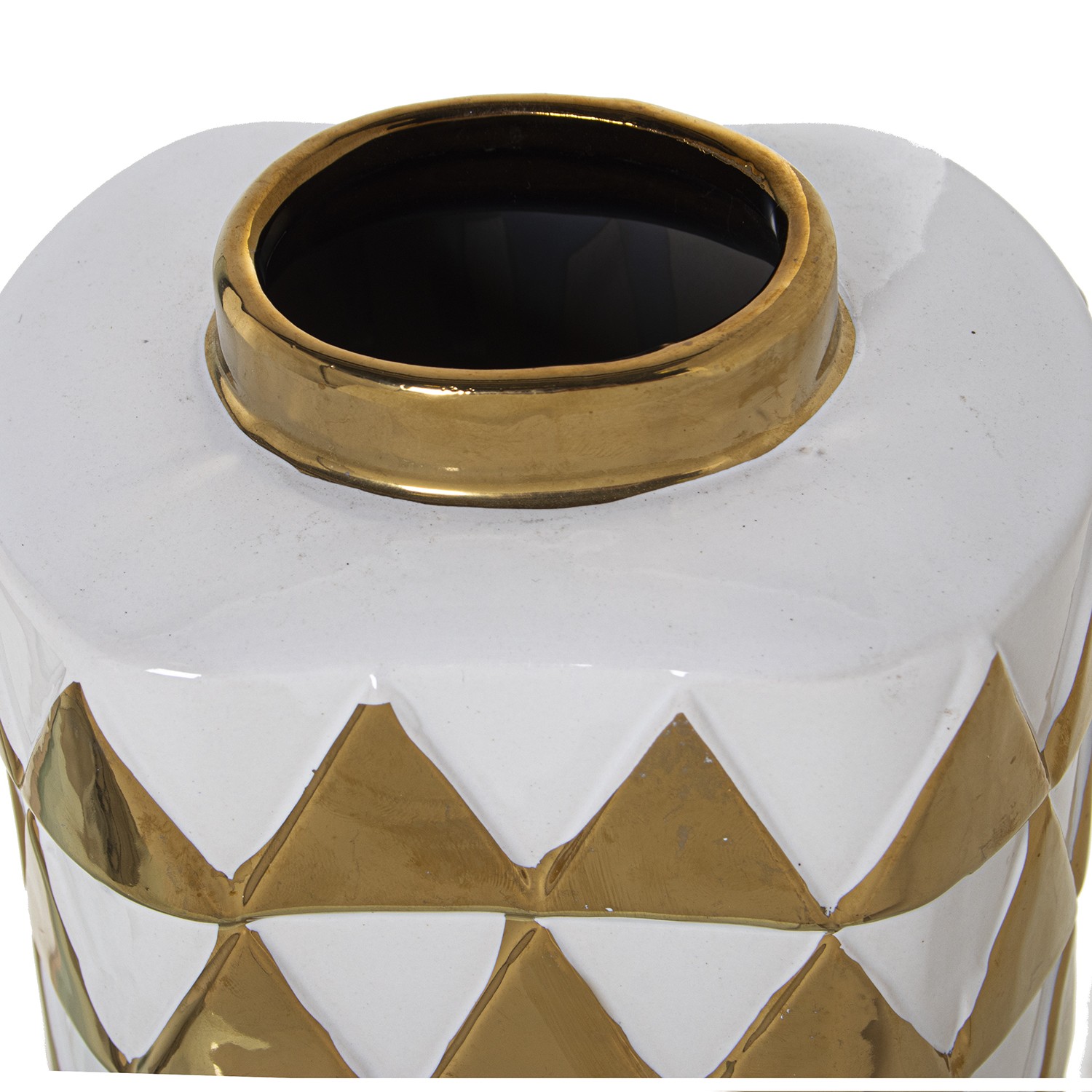 » White And Gold Ceramic Ginger Jar Triangles- 13x10x28cm