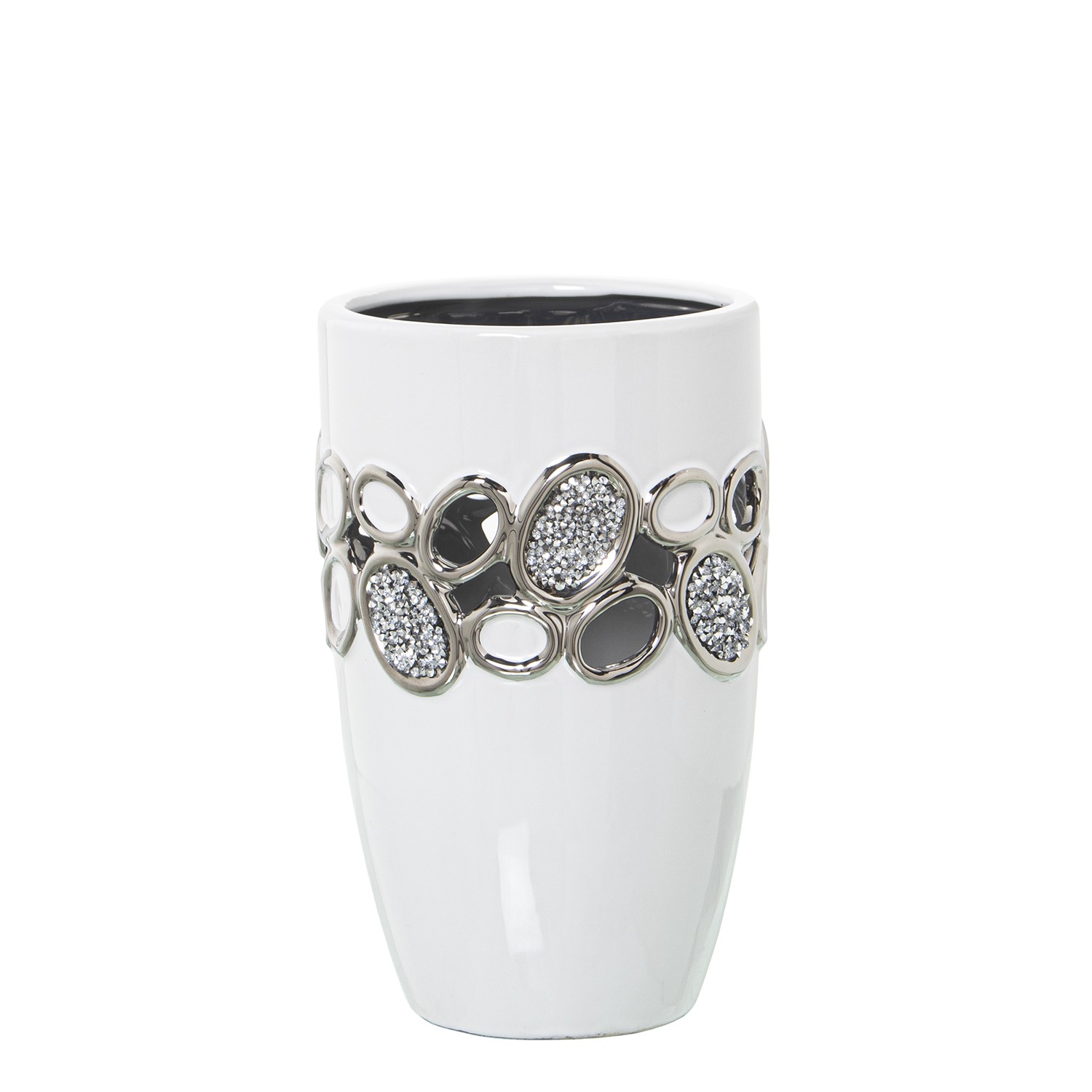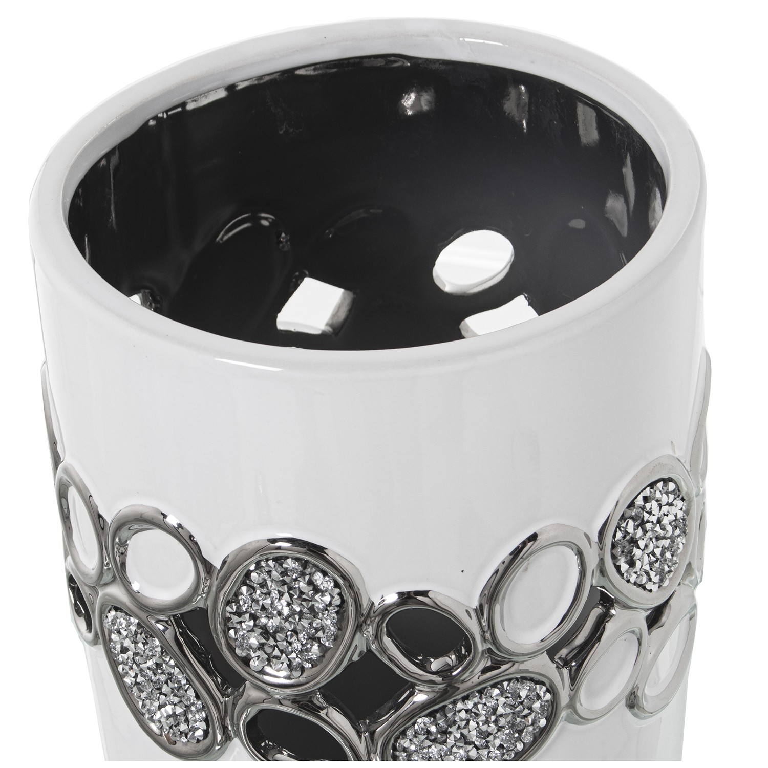 White And Silver Ceramic Fretwork Vase- Ø14x23cm