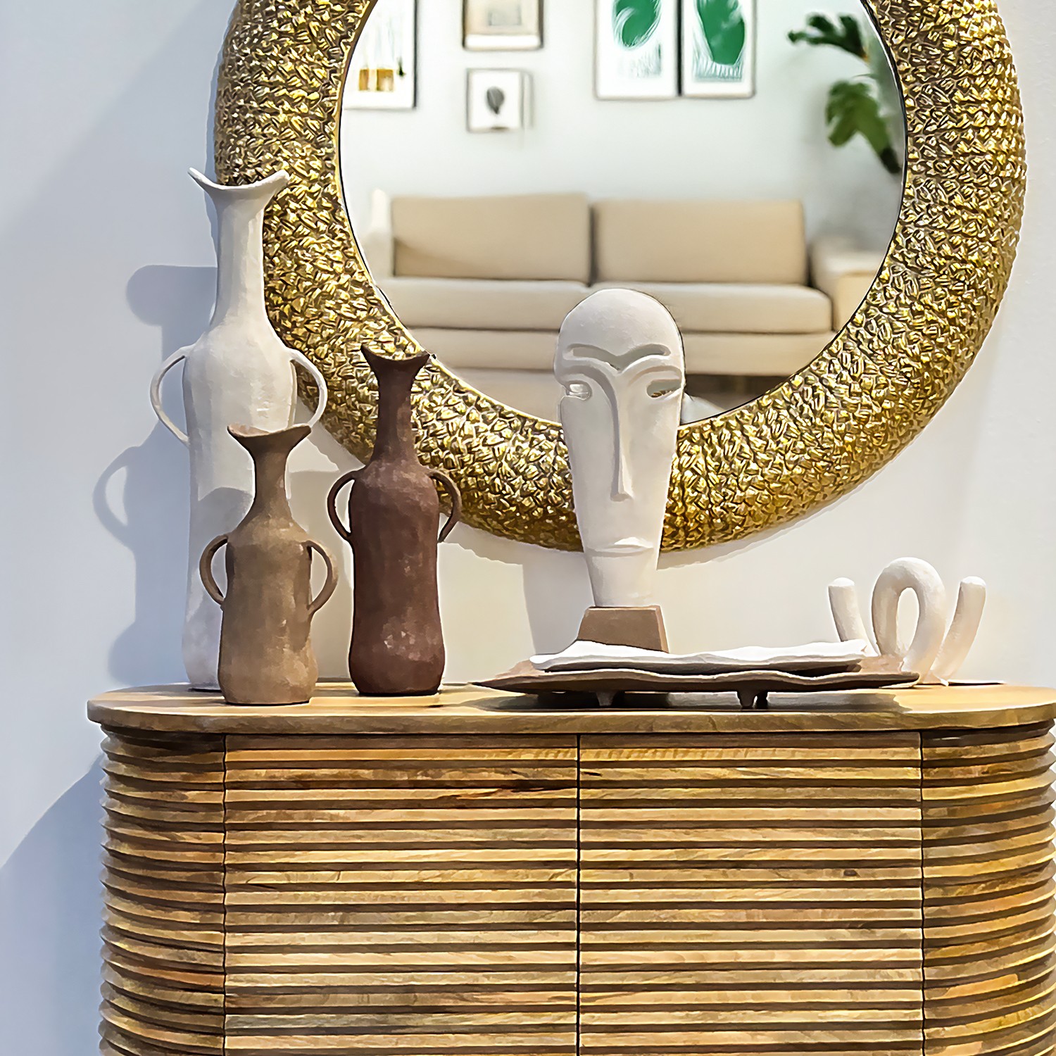 » White Aluminium Face Figure W/brown Base 13x10x39cm