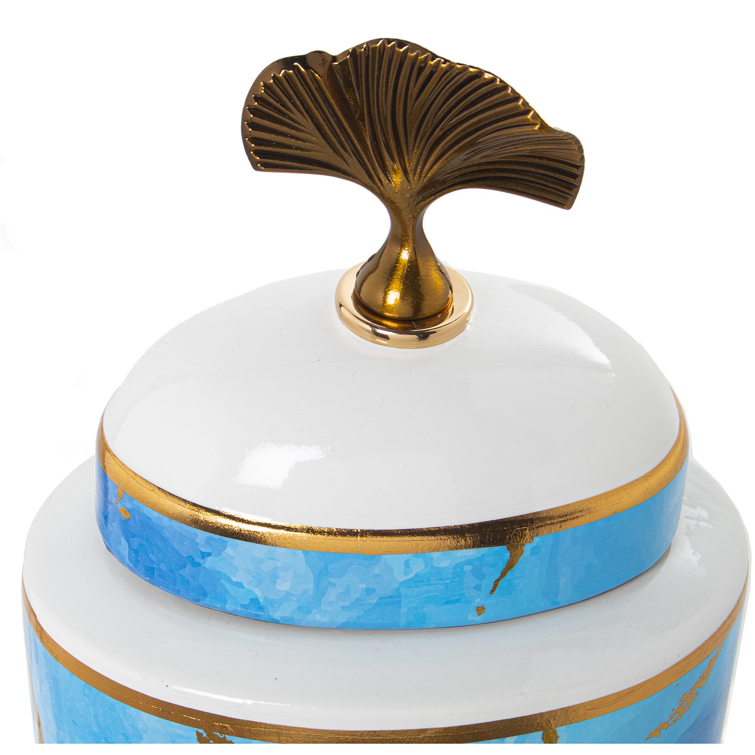 White, Blue And Golden Ceramic Ginger Jar- 14x10x36cm