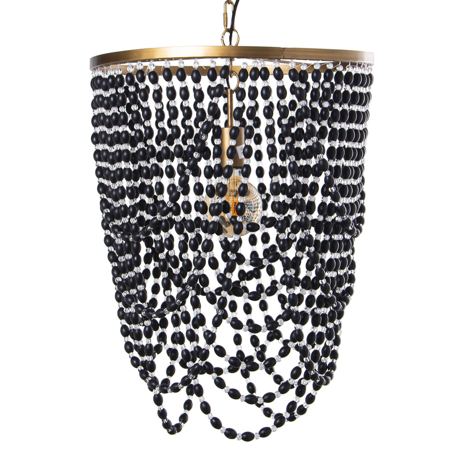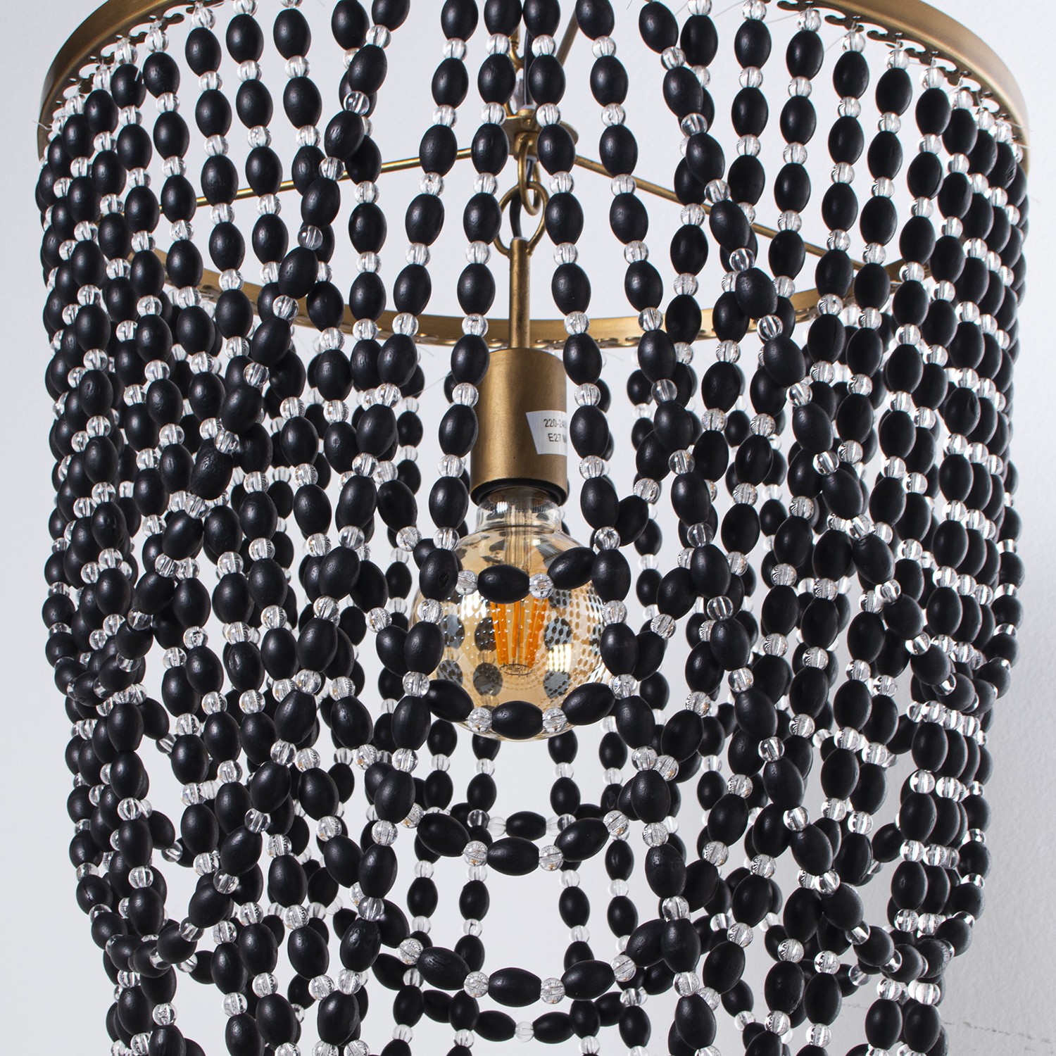 » Iron Metal With Wood Beads Pendant Light - 1xe27, Max.60w- Ø46x61/160cm