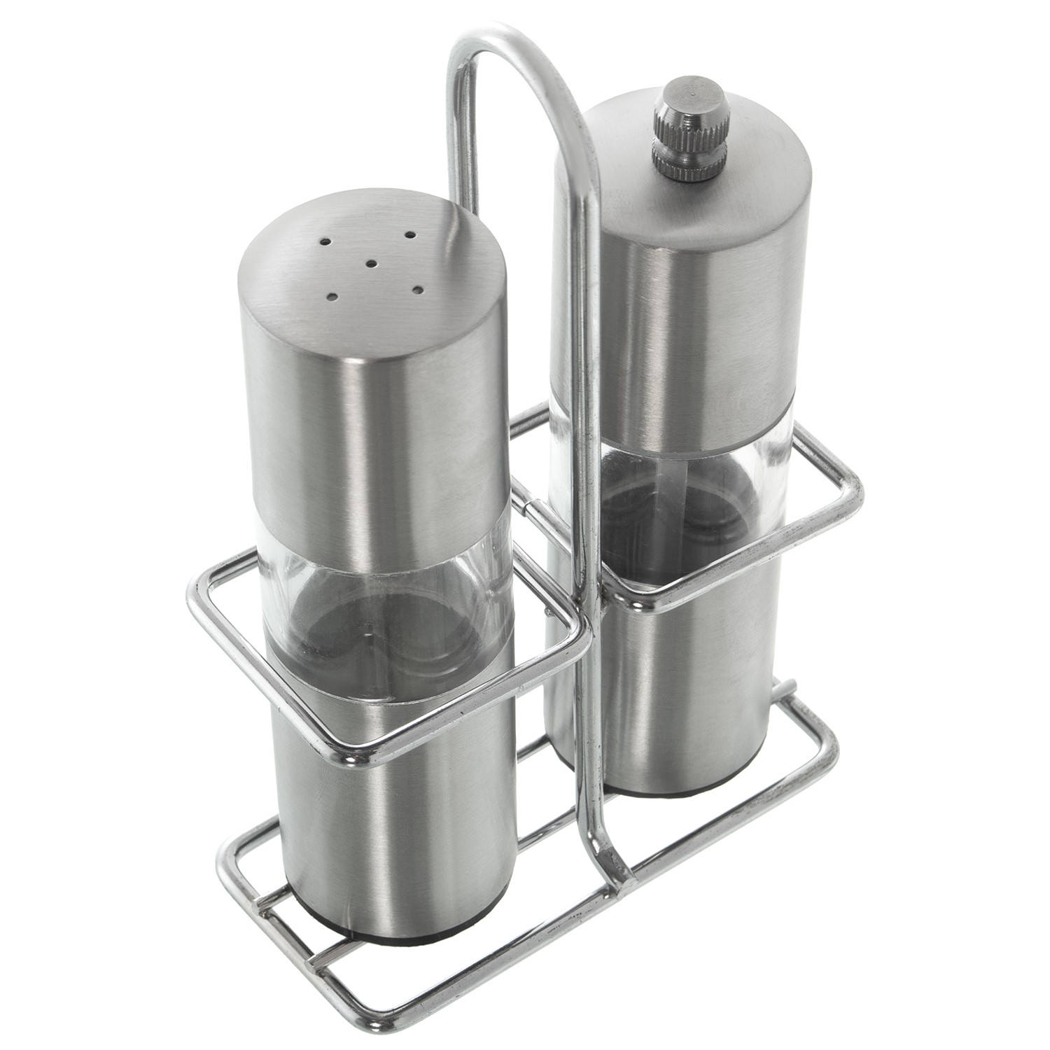 Set Salt Pan + Pepper Stainless Steel/acrylic C/metal Support Cr 10x4,5x16cm,salt Pan:3,5x12,5cm