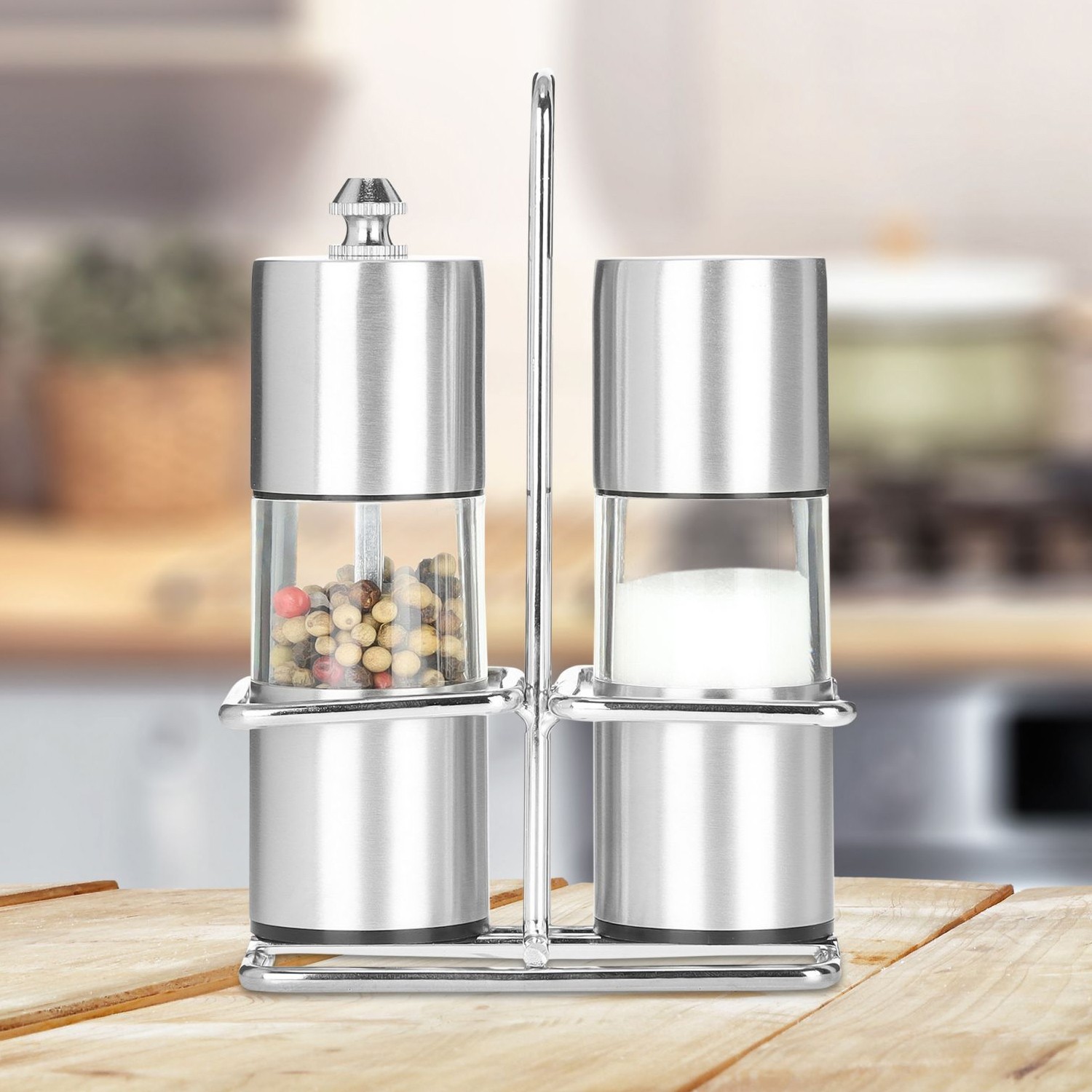 » Set Salt Pan + Pepper Stainless Steel/acrylic C/metal Support Cr 10x4,5x16cm,salt Pan:3,5x12,5cm