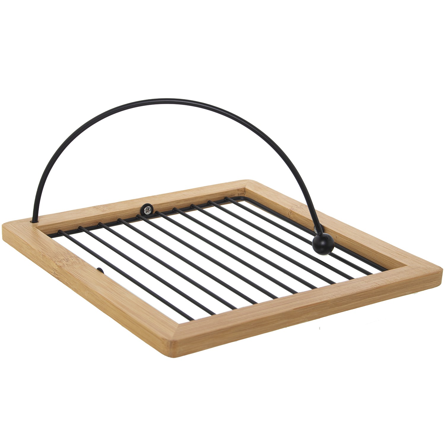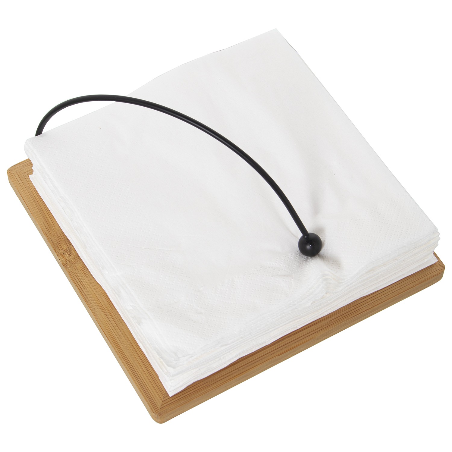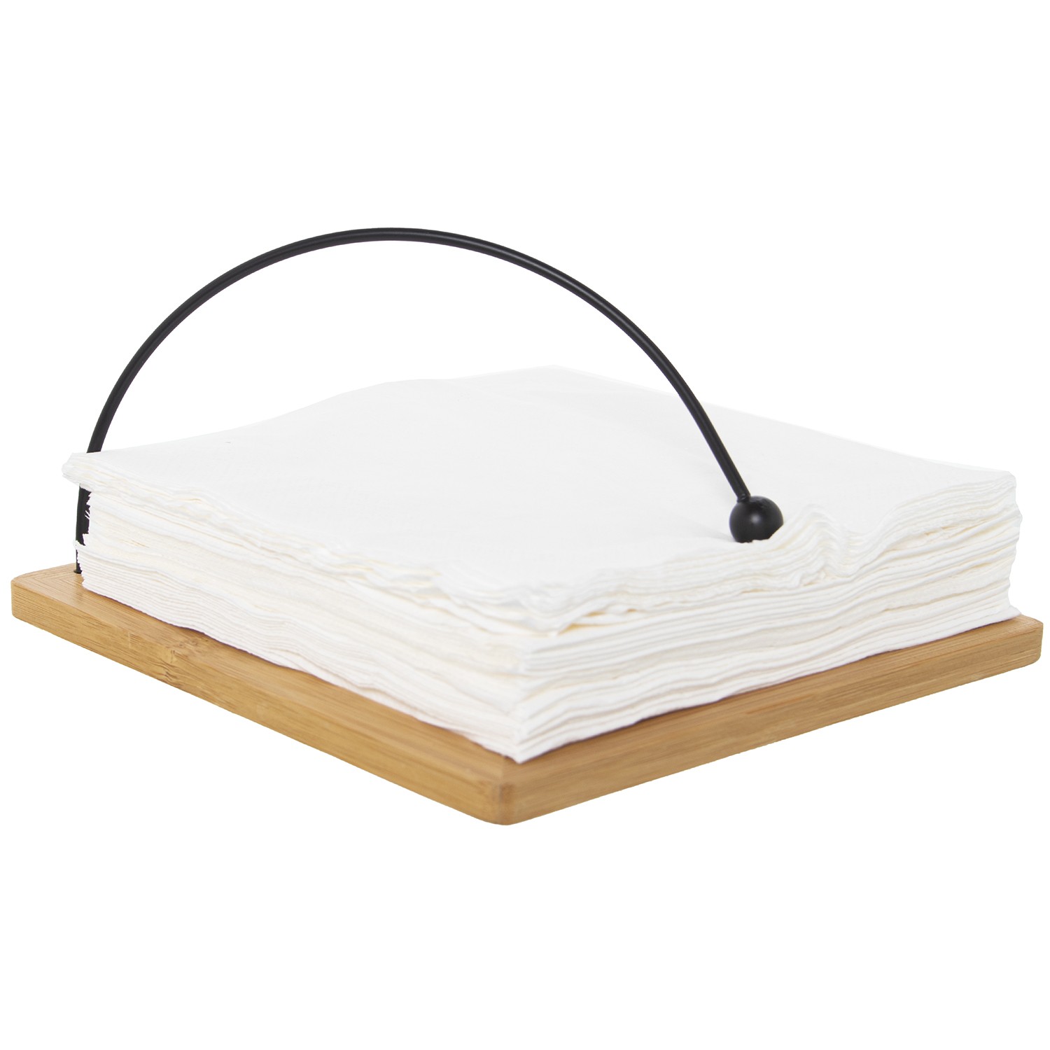 » Black Metal Napkin Holder C/wooden Frame 18x18x9cm, Base:18x18x1,5cm