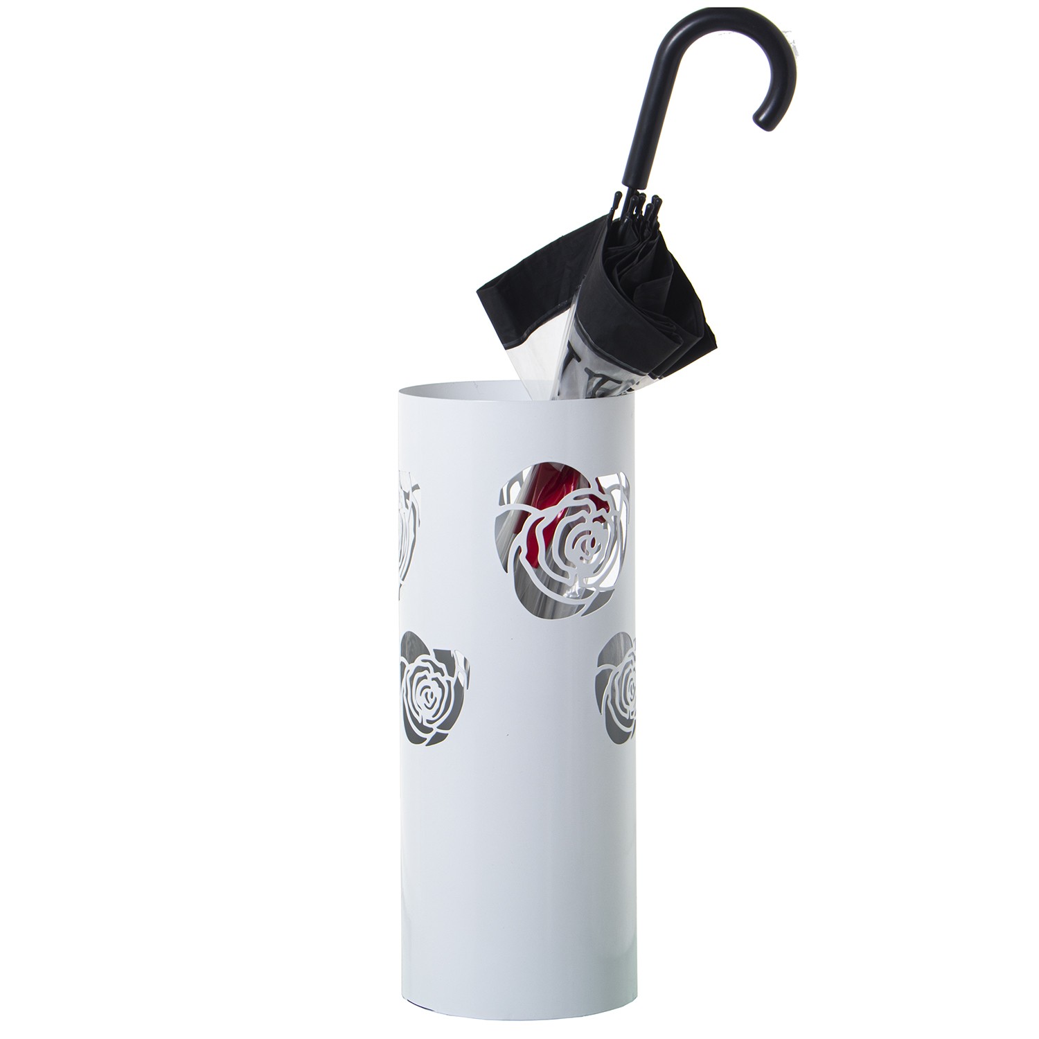 White Metal Round Umbrella Stand Ø19x49cm, Flowers Deco.