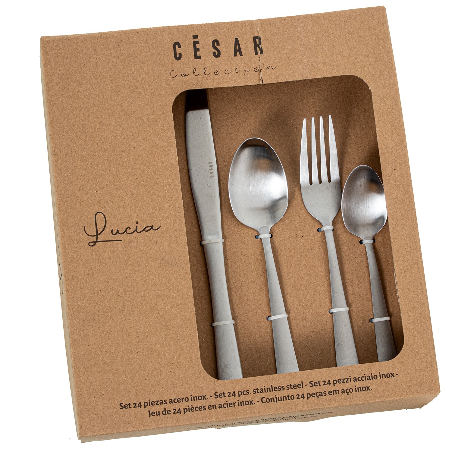 » Set 24 Cubiertos Acero Inoxidable Plata Mate (lucia) Apto Para Lavavajillas