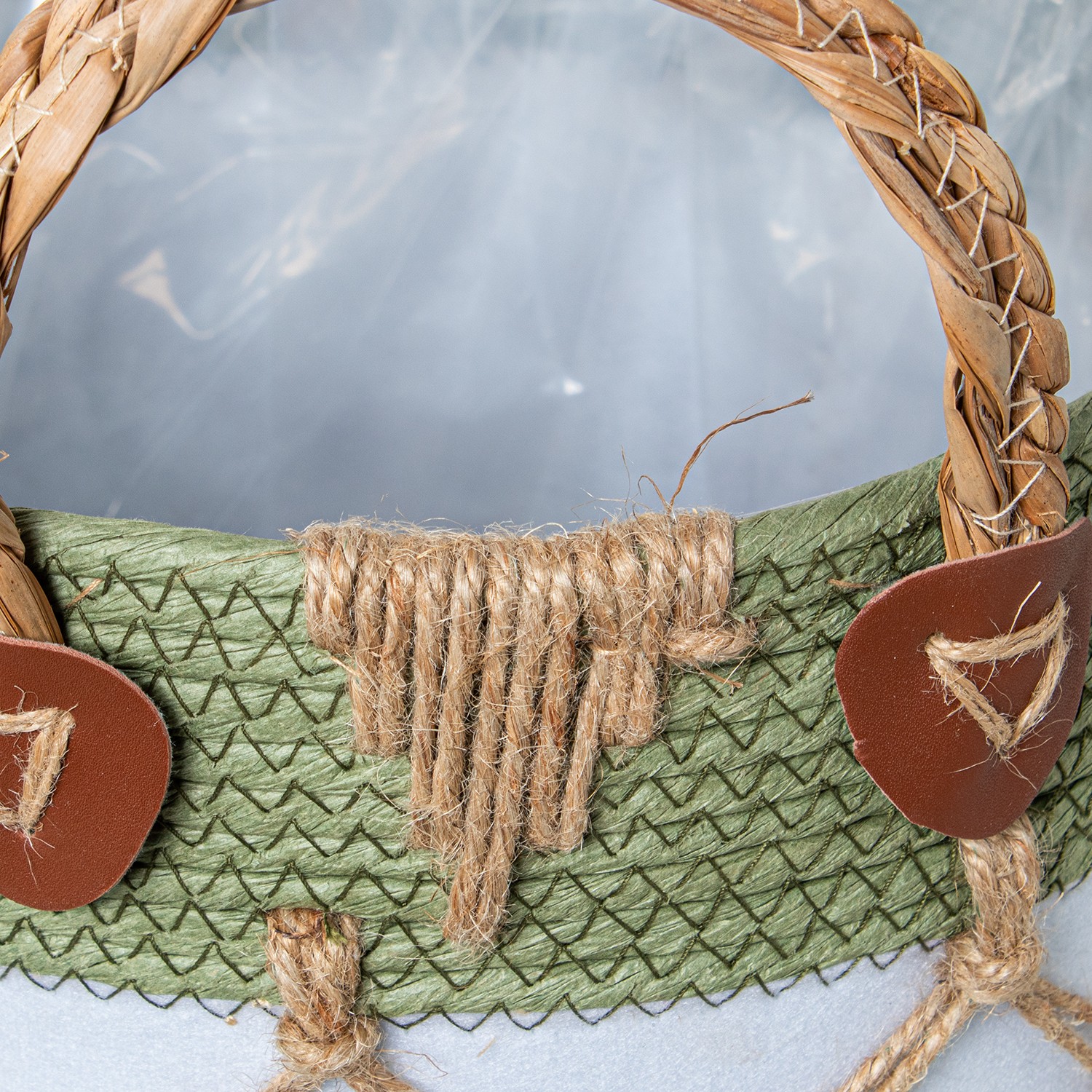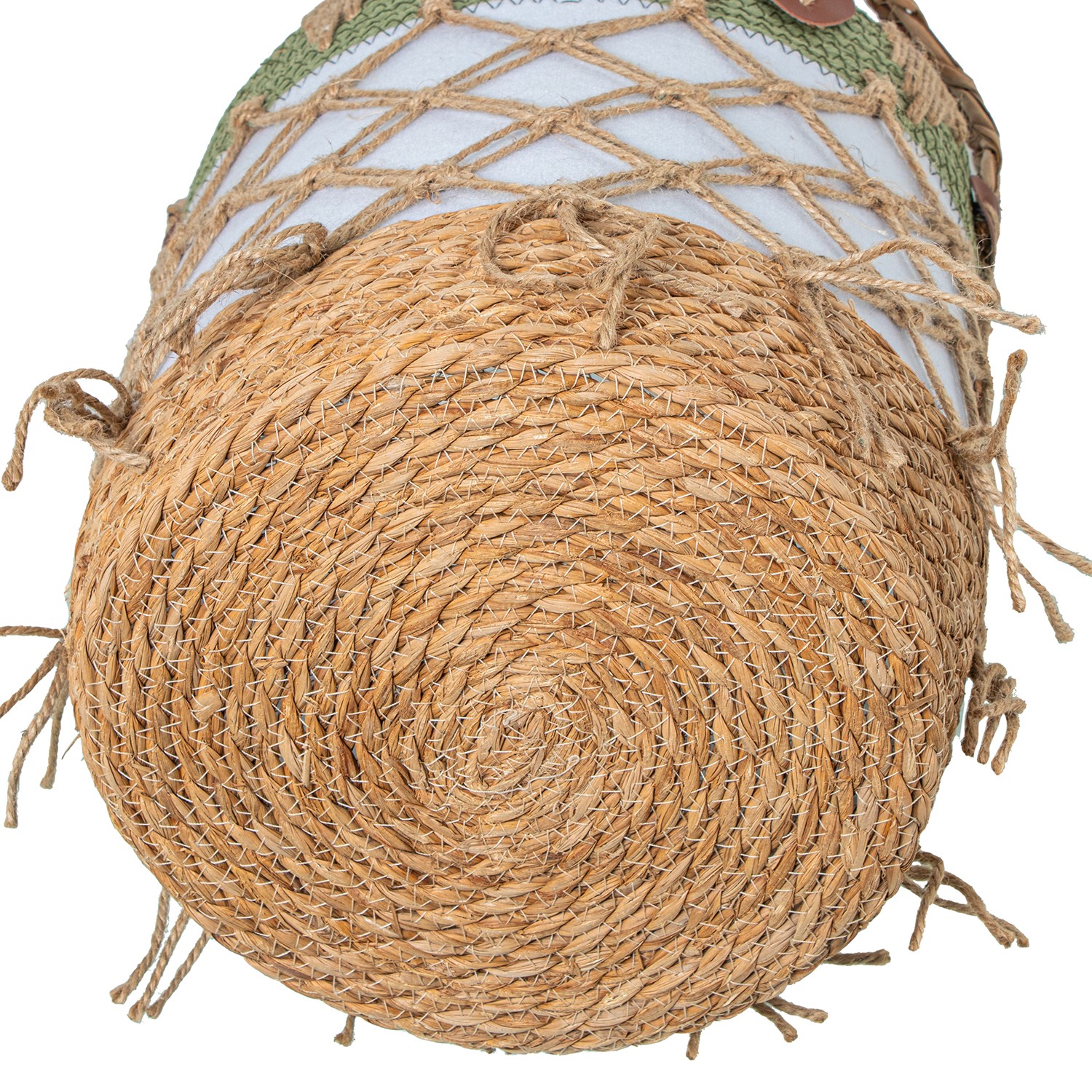 Inicio » Decoracion Otros » Set 3 Cestos Mimbre Natural/verde Tela Blanca C/flecos Ø33x43+ø30x37+ø24x31cm