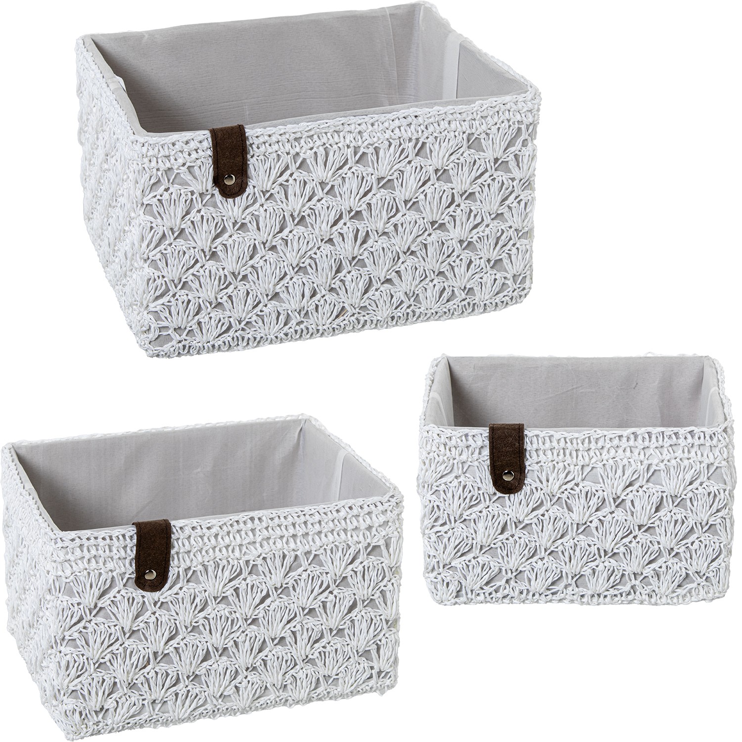 Set 3 Cestas Almacenamiento Tela Blanca 31x25x19+28x21x17+23x17x15cm