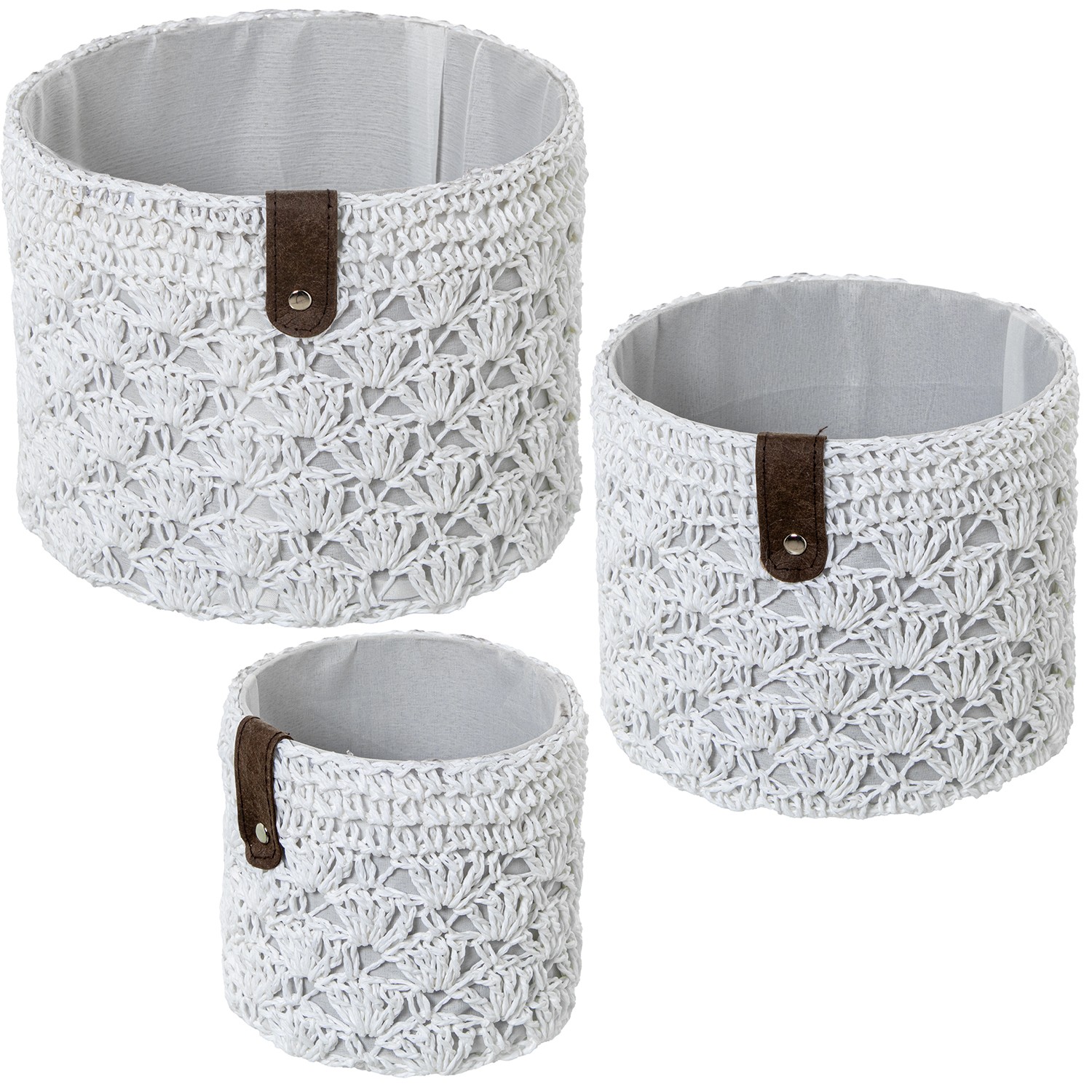 Set 3 Cestas Almacenamiento Tela Blanca Ø23x18+ø19x16+ø14x13cm