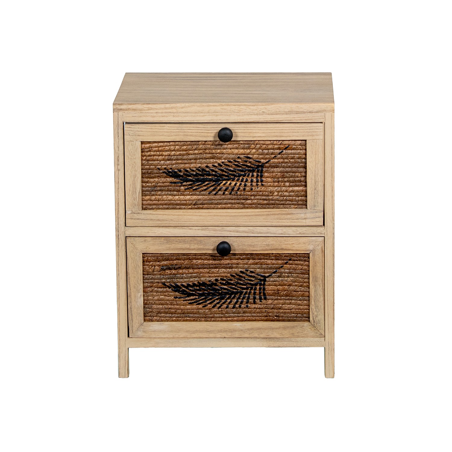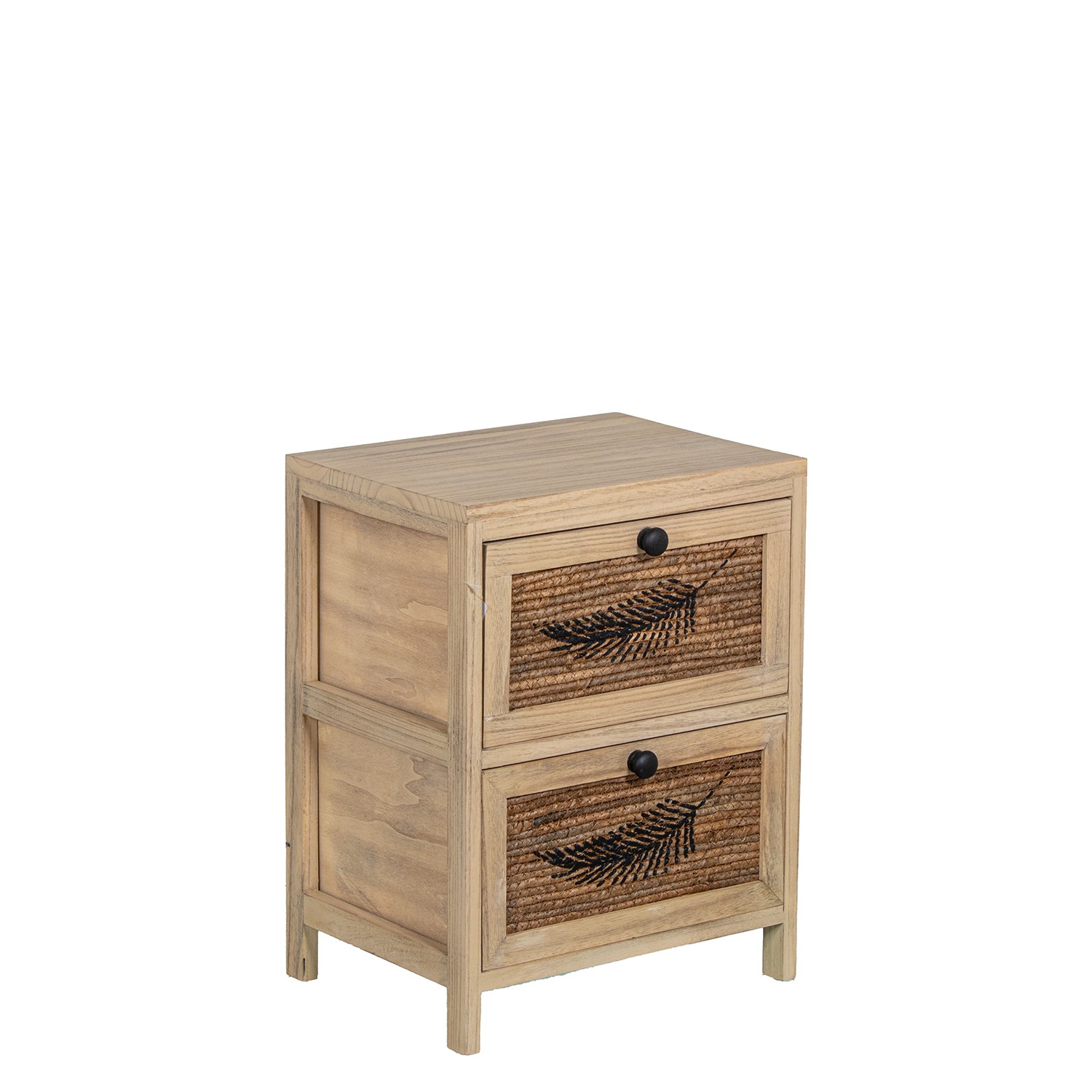 Cajonera Madera C/2 Cajones Mimbre Deco. Hoja, Madera Paulow 40x30x52cm Cajones:36x28x19cm