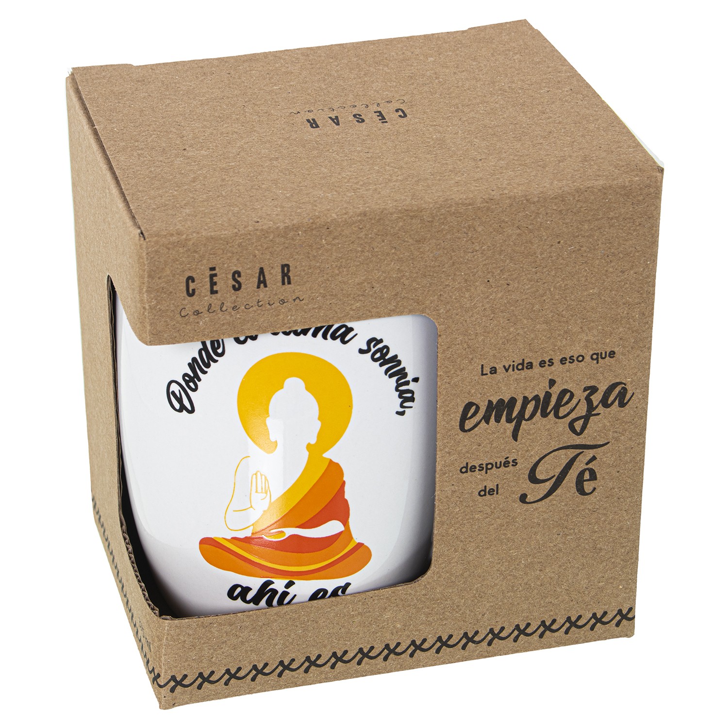 » Mug Infusión Cerámica C/filtro Acero Inox. Buda Donde El Al Ø8,5x11cm, 375ml