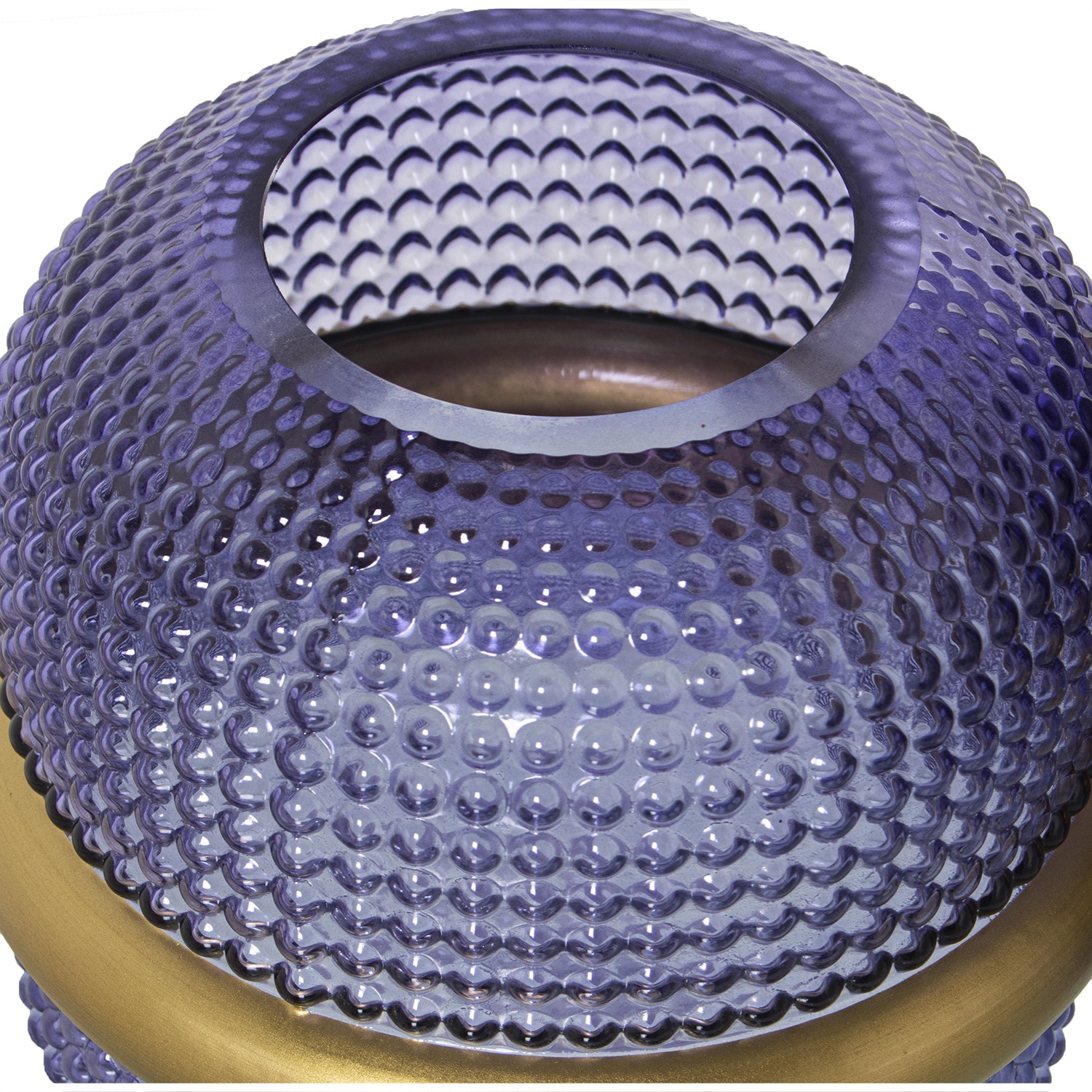 Jarrón Cristal Azul Aro Dorado Ø17x15cm, Boca:ø7,5cm