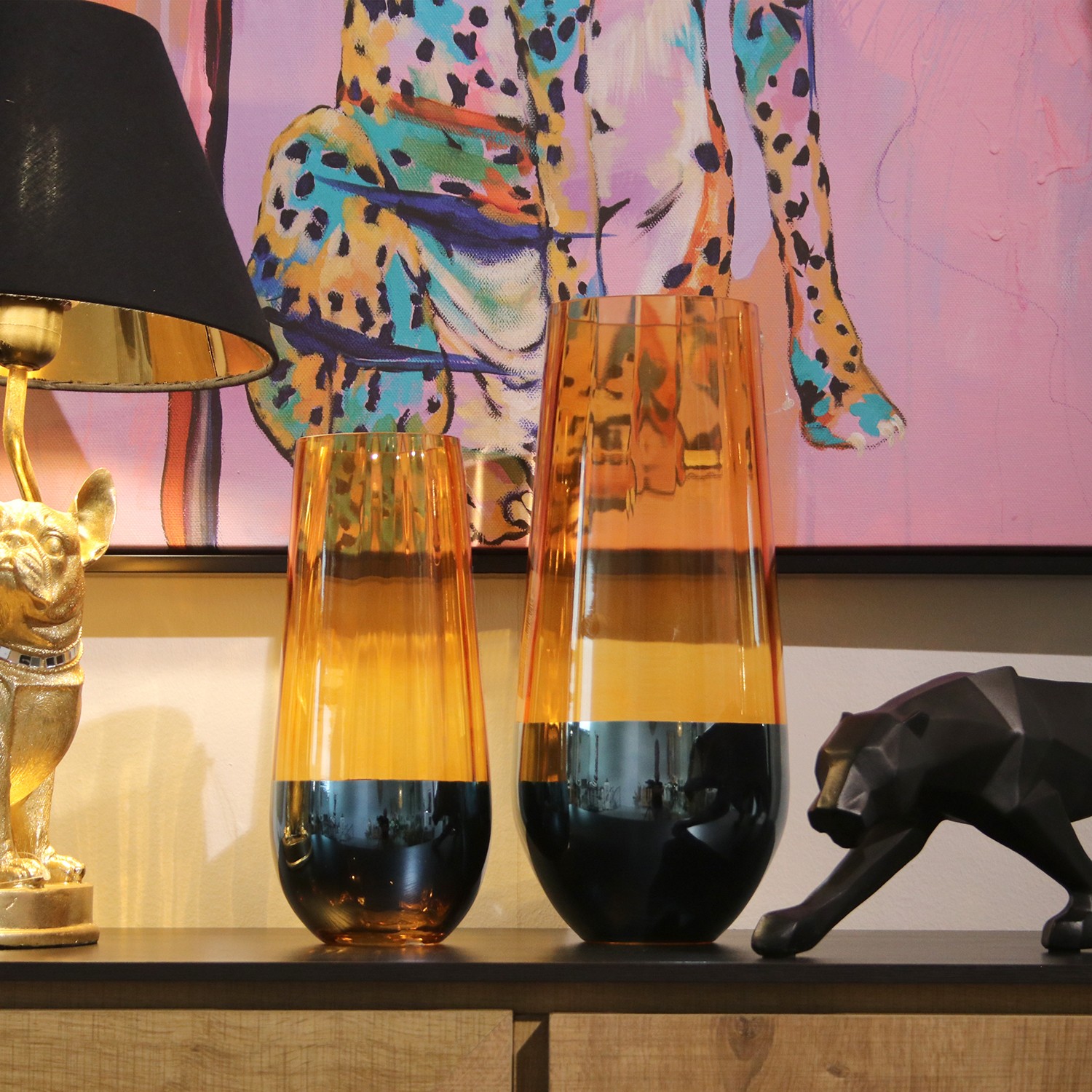Jarrón Cristal Naranja/azul Ø14x32cm, Boca:ø10,5cm
