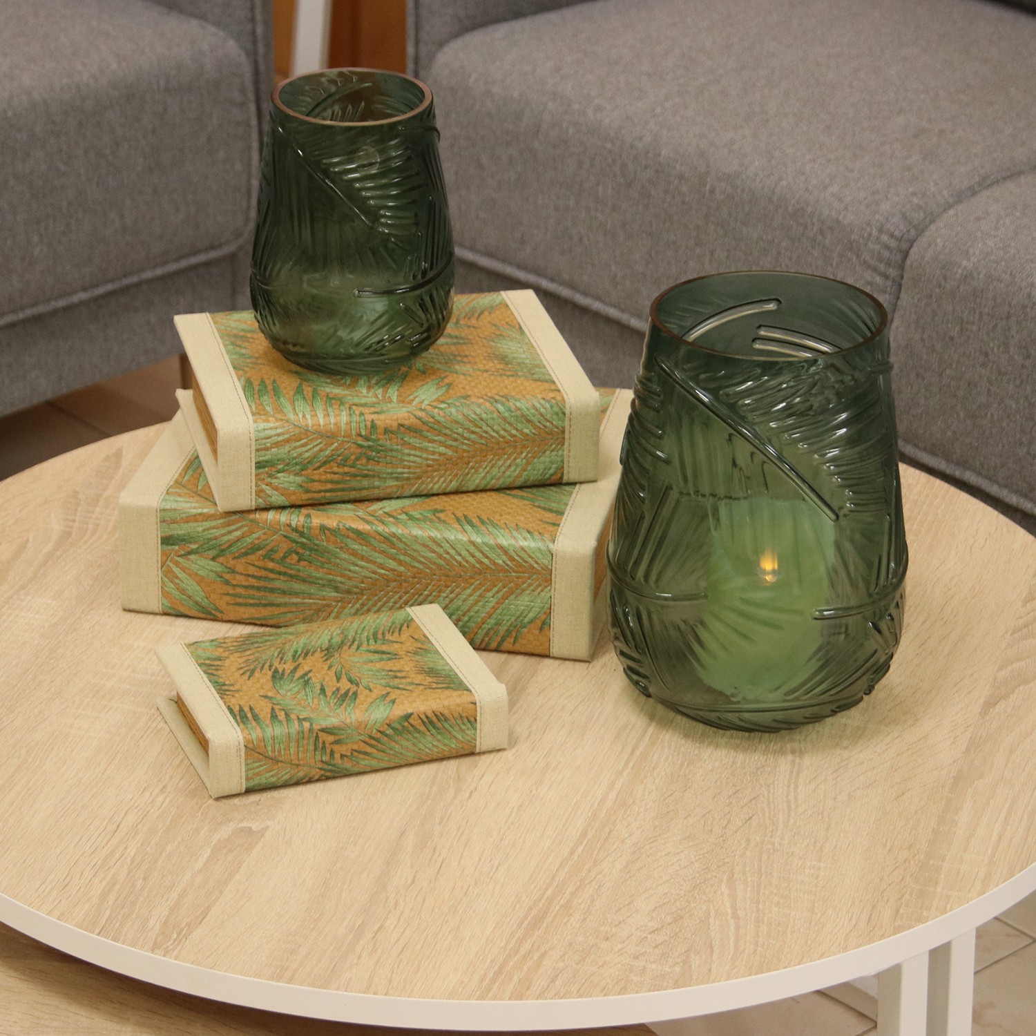 Jarrón Cristal Verde Ø13x18cm,boca:ø10cm-base:ø7cm