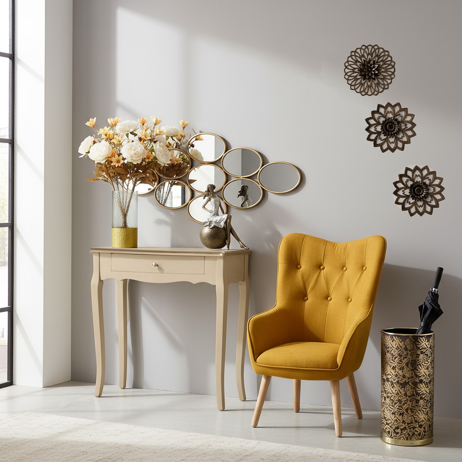 Set 3 Adornos Pared Melamina Dorada Envejecida Ø25cm