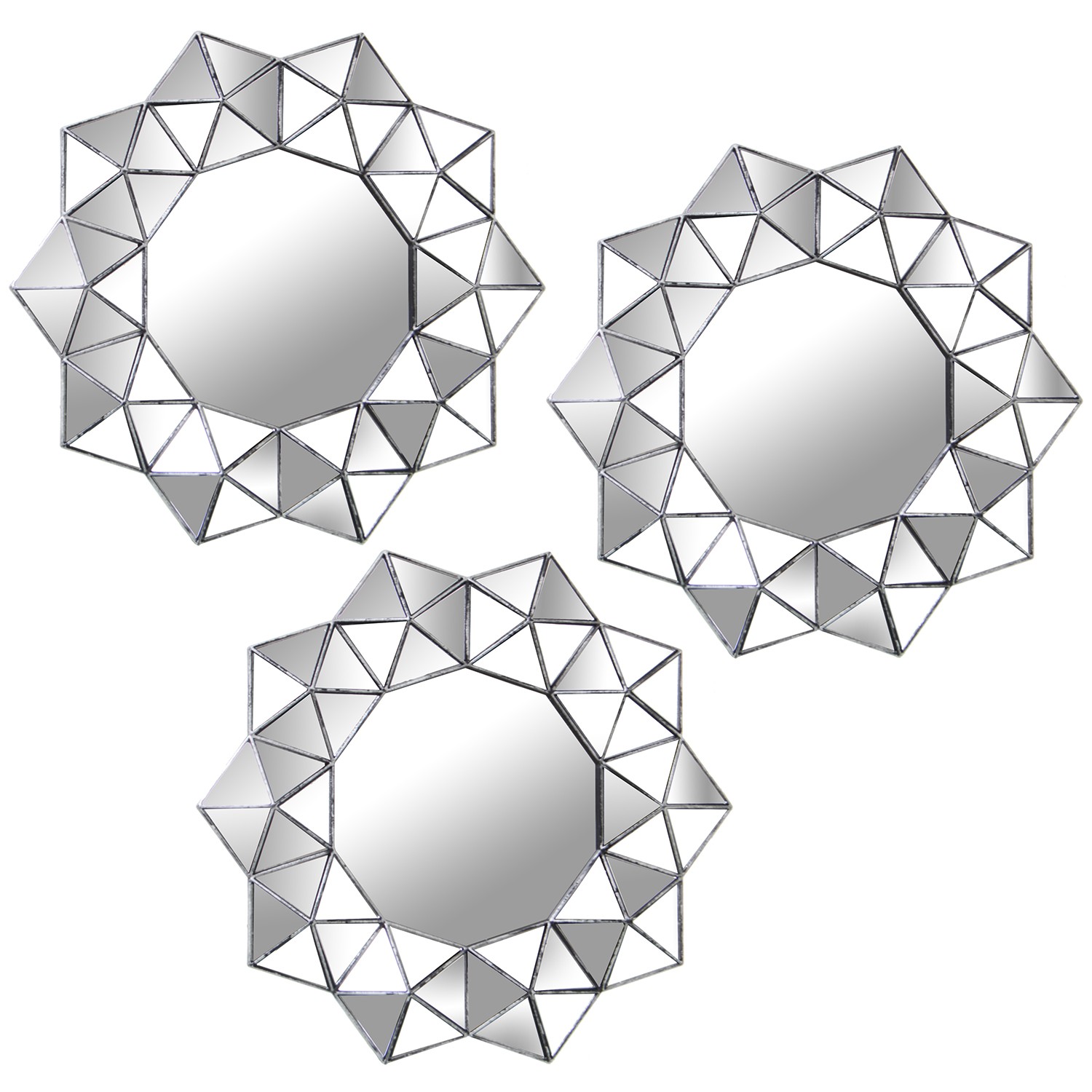 Set 3 Adornos Pared Espejo C/melamina Plateada Ø25cm