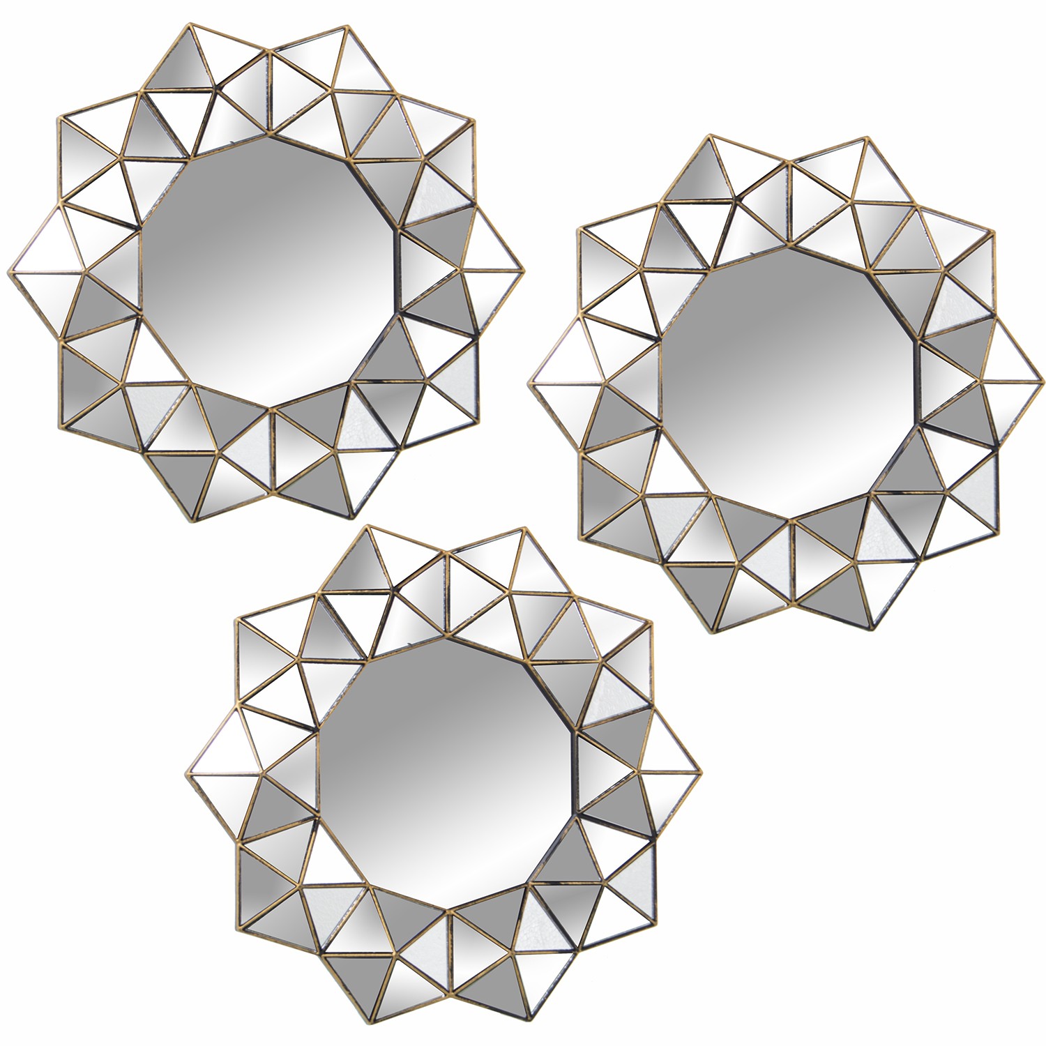 Set 3 Adornos Pared Espejo C/melamina Dorada Ø25cm
