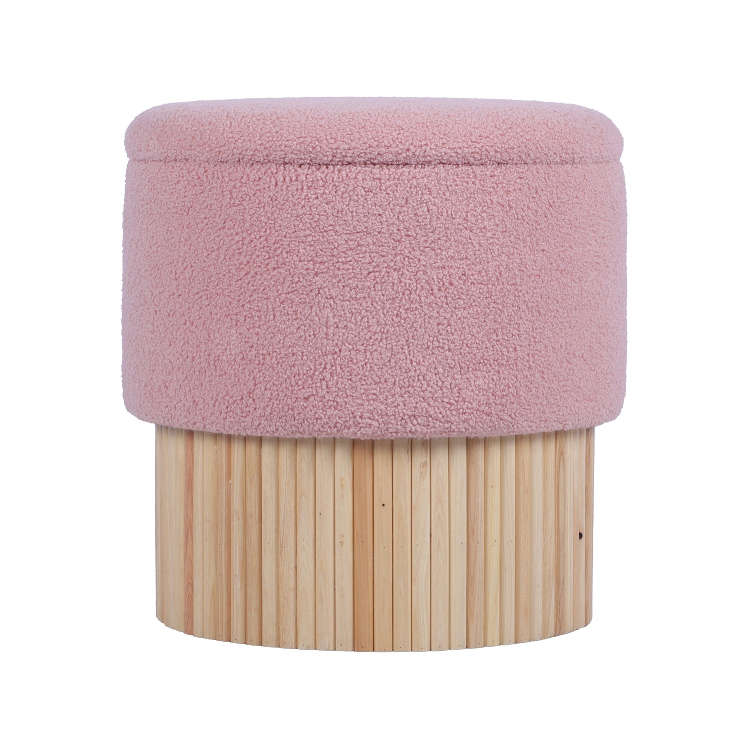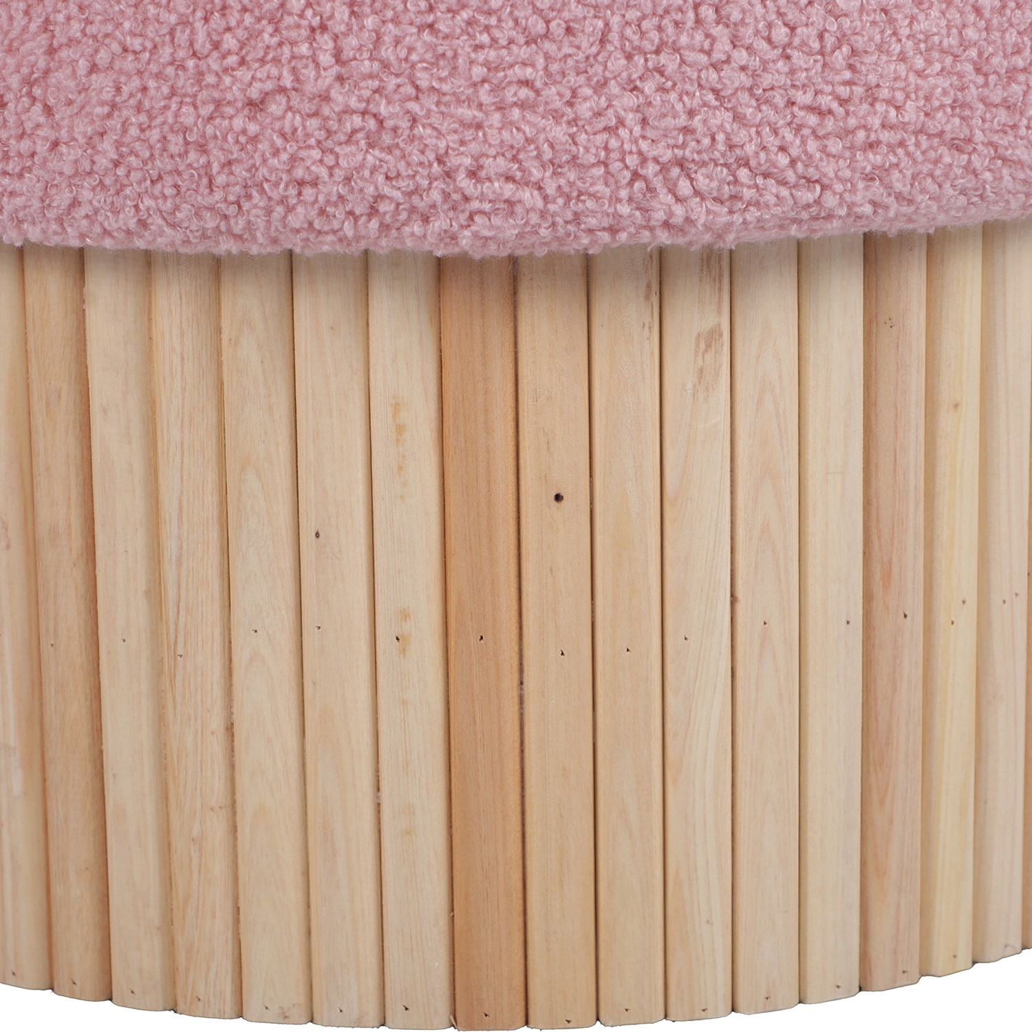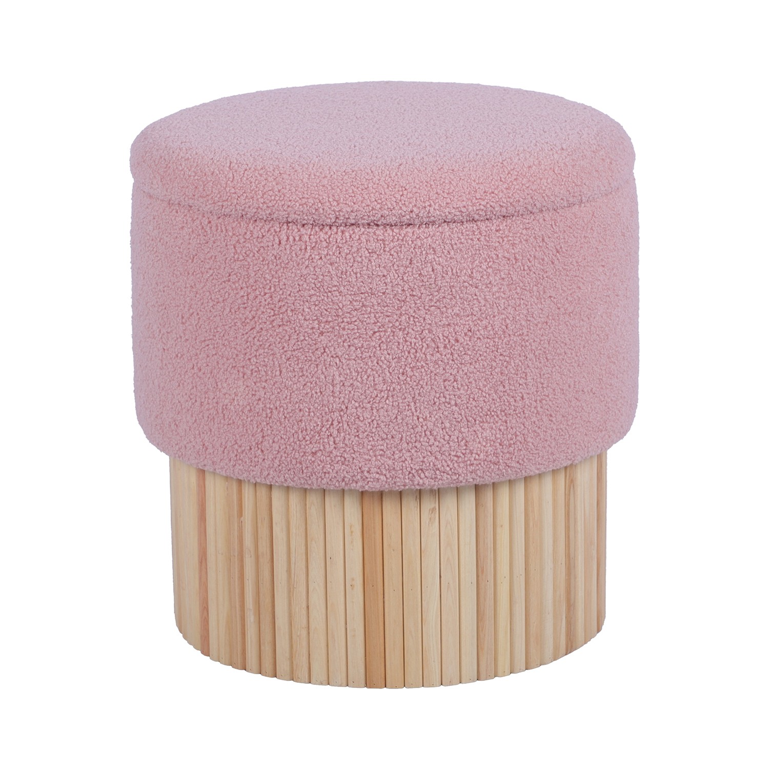 Puf Tapizado Rosa C/base Madera Natural Ø39x41cm