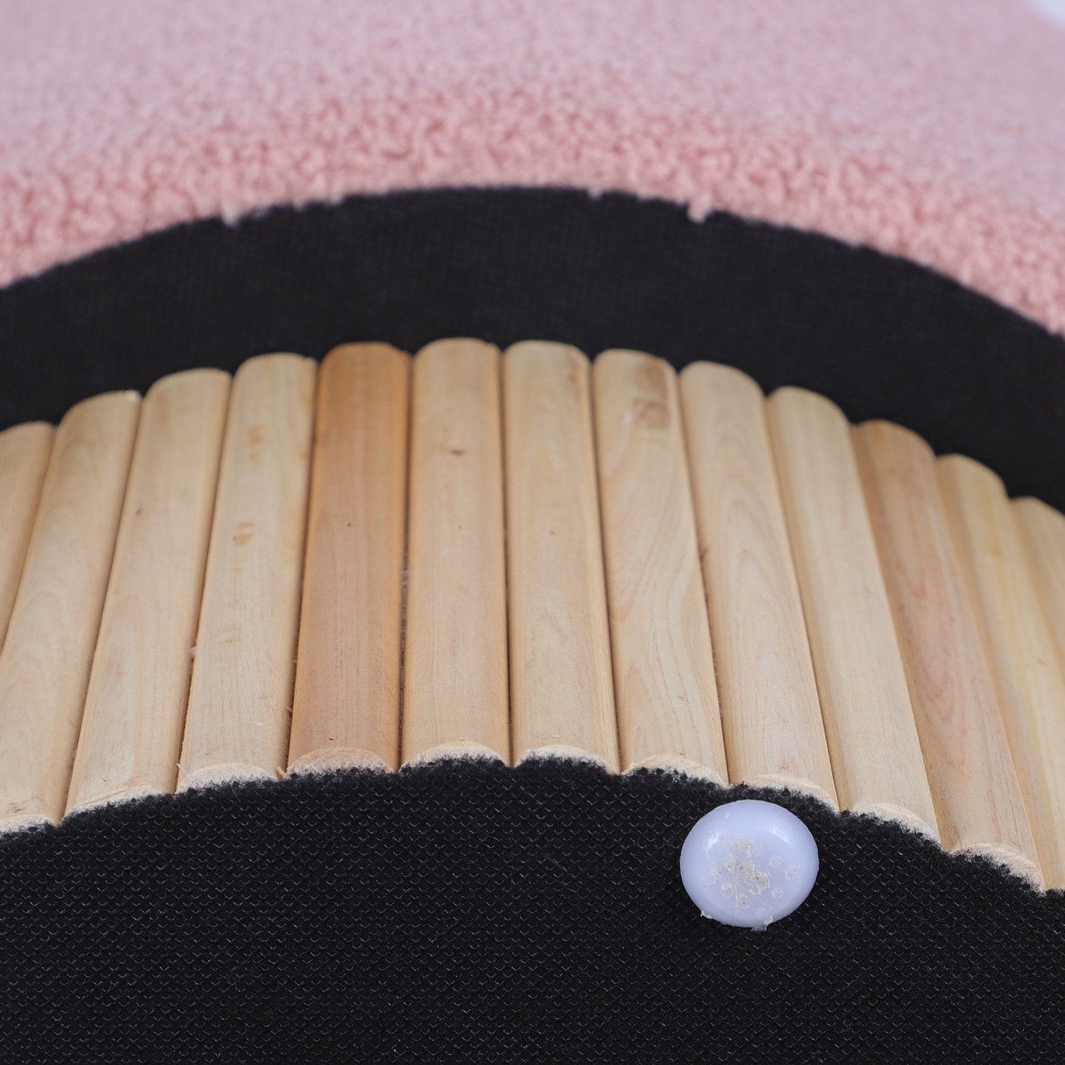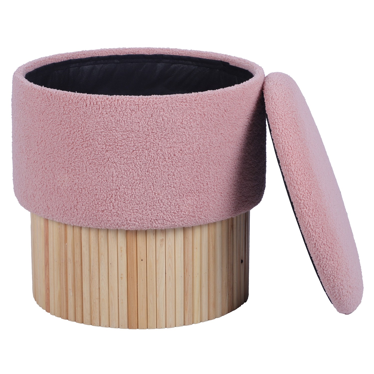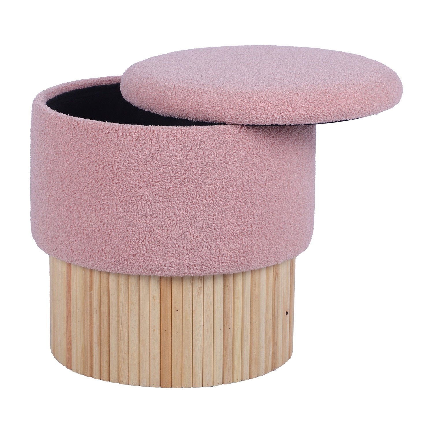 Puf Tapizado Rosa C/base Madera Natural Ø39x41cm