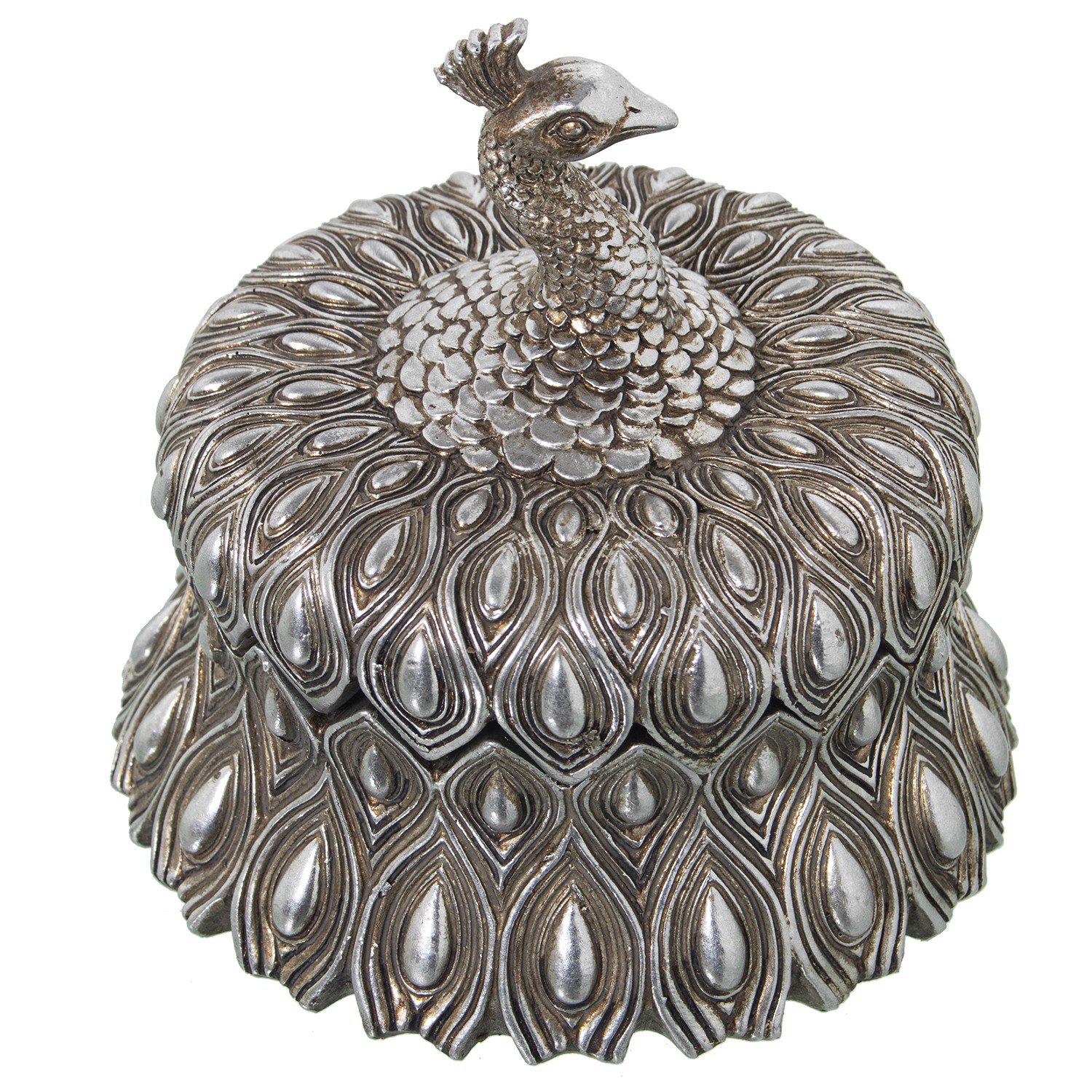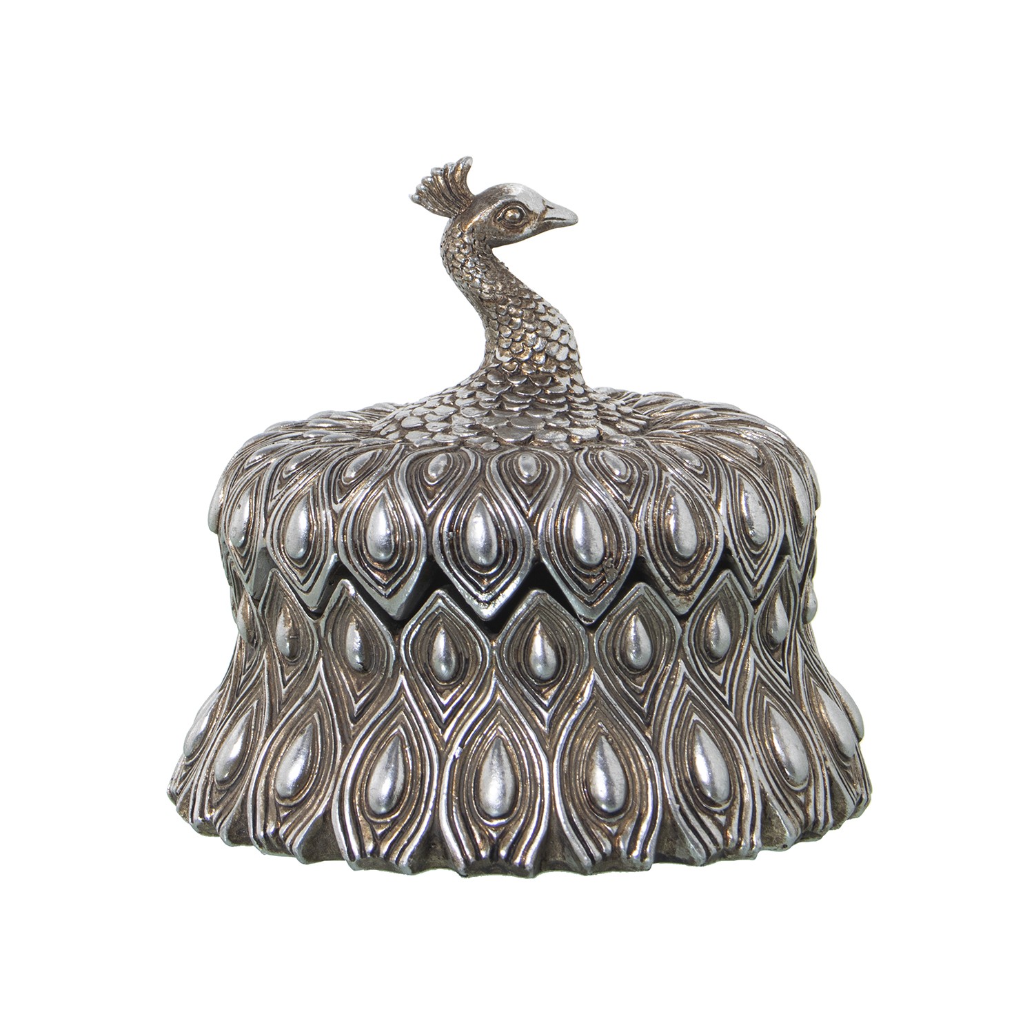 Caja Joyero Resina Plateada Pavo Real Ø13,5x12,5cm
