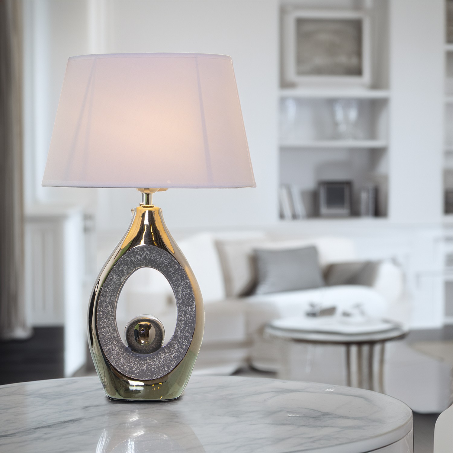 Lámpara Sobremesa Cerámica Gris/plata+92231,1xe27,max.40w N 32x20x50cm, Base:17x10x34cm