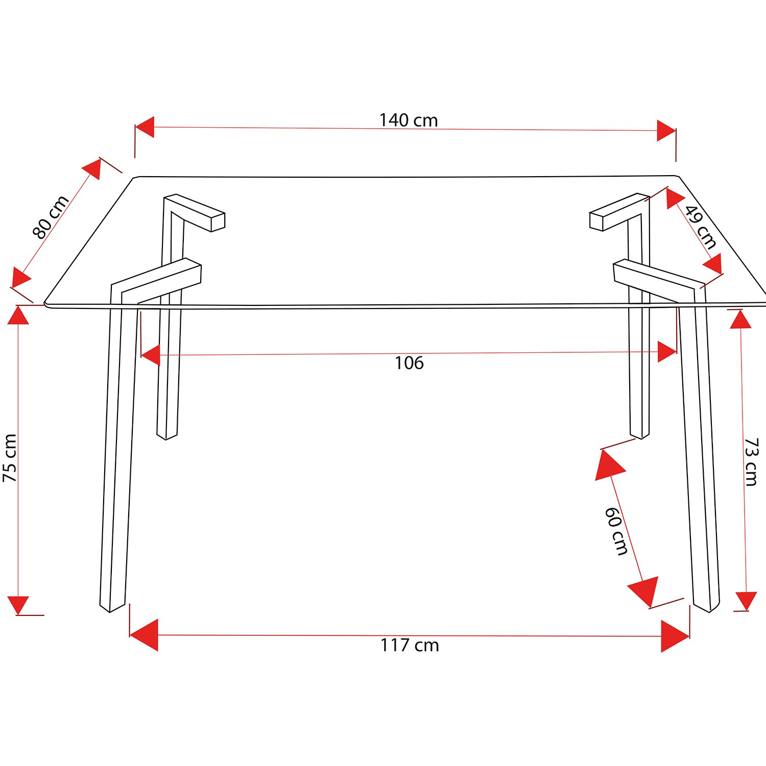 Mesa Comedor Metal/cristal+90977, Patas: Acero Inox. 140x80x75cm-cristal Temp:8mm