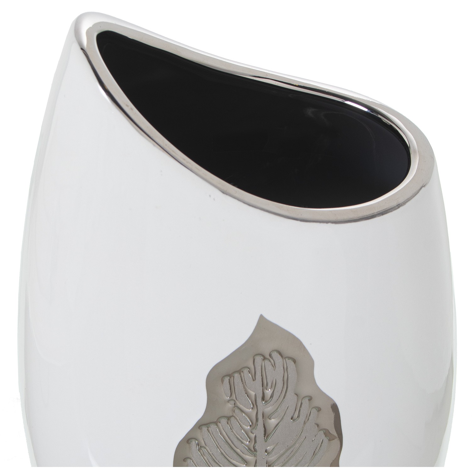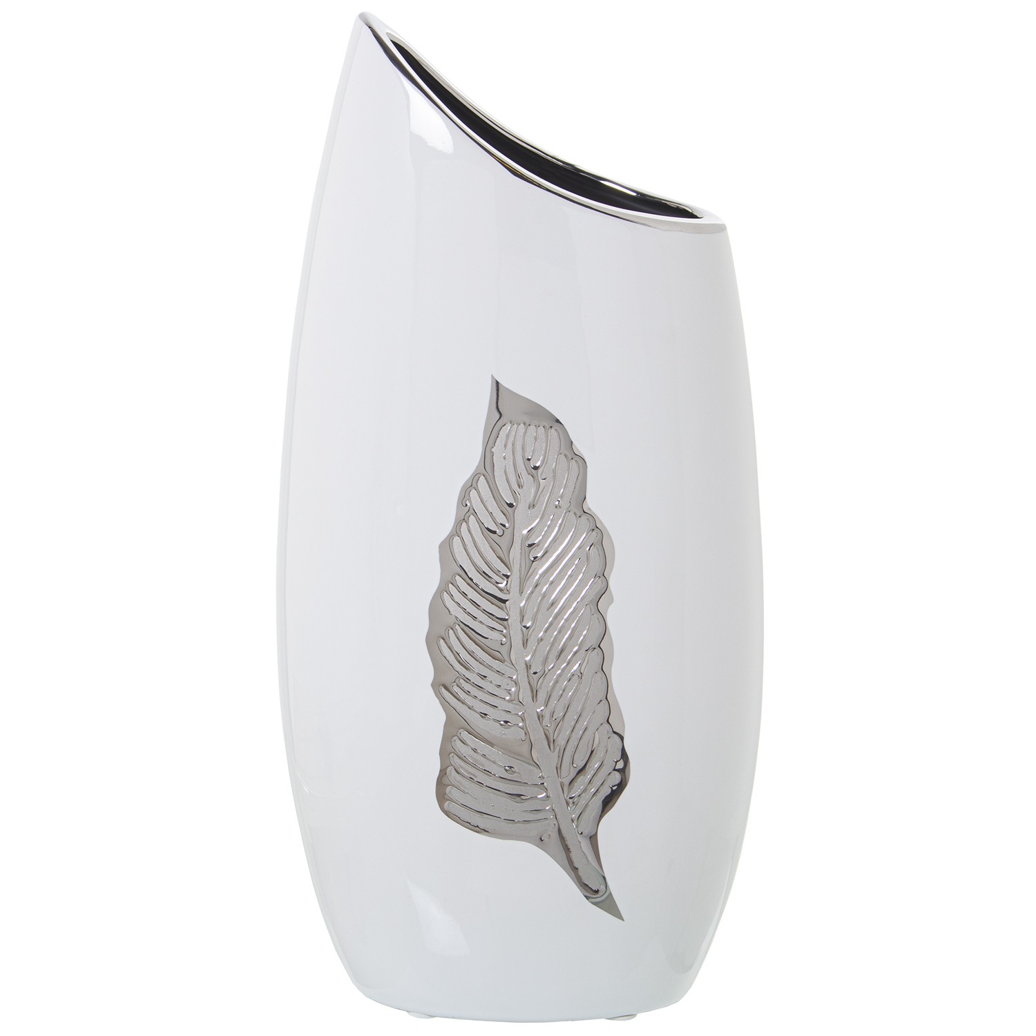 » Jarrón Cerámica Plateado/blanco Hoja 19x12x39cm