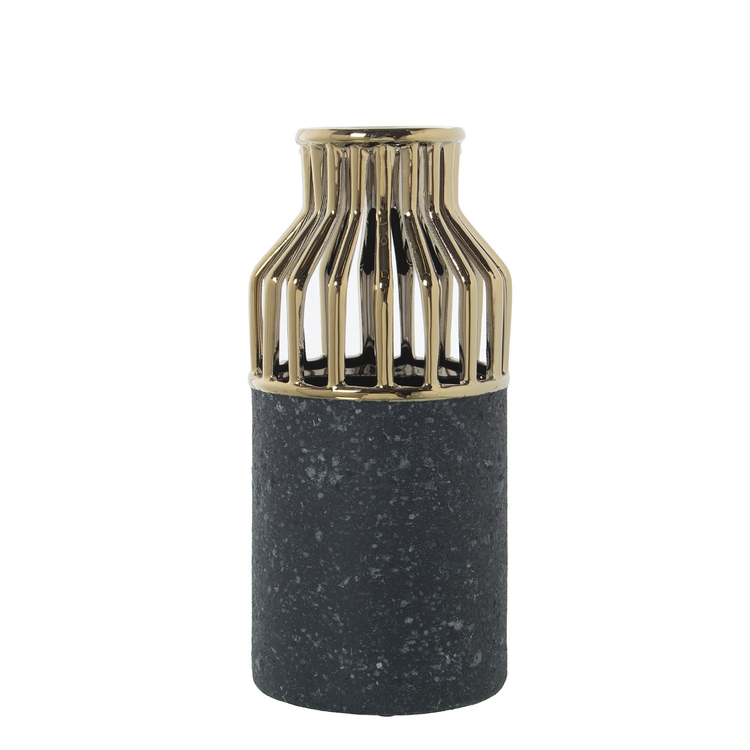 Jarrón Cerámica Oro/gris Oscuro Ø13x28cm