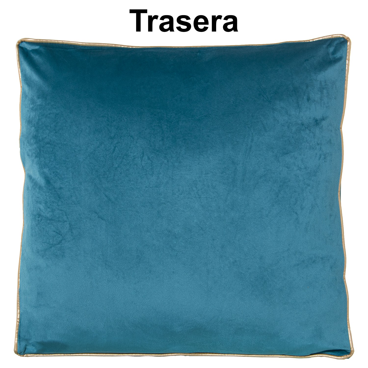 » Cojin 45x45 Terciopelo Azul Franja Dorada C/cremallera 45x45cm