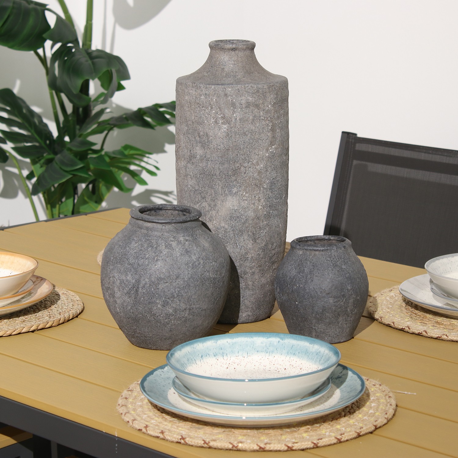 » Jarrón Cerámica 42cm Gris Rústico Ø17x42cm