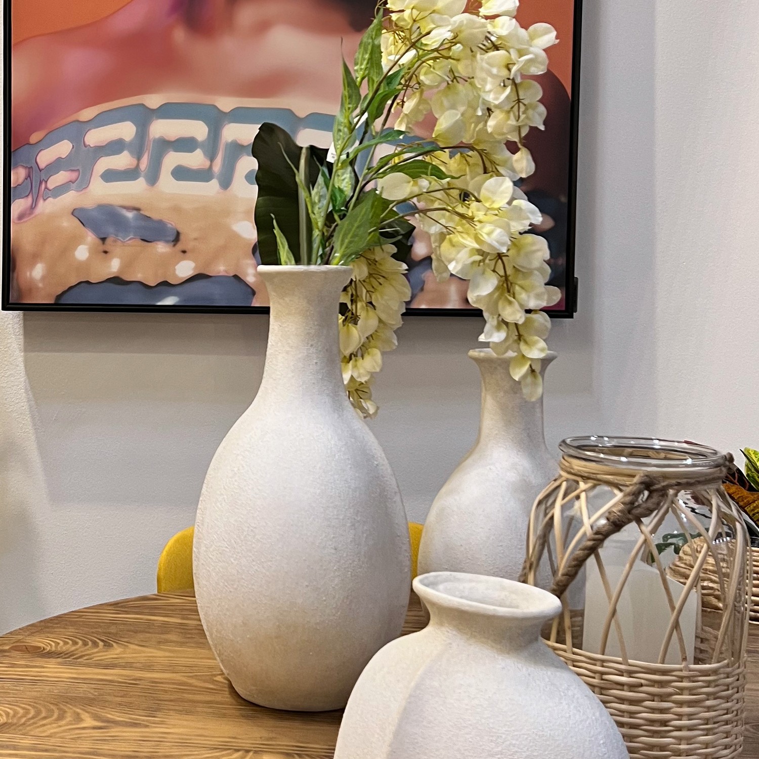 Jarrón Cerámica 46cm Blanco Rústico 29x23x46cm