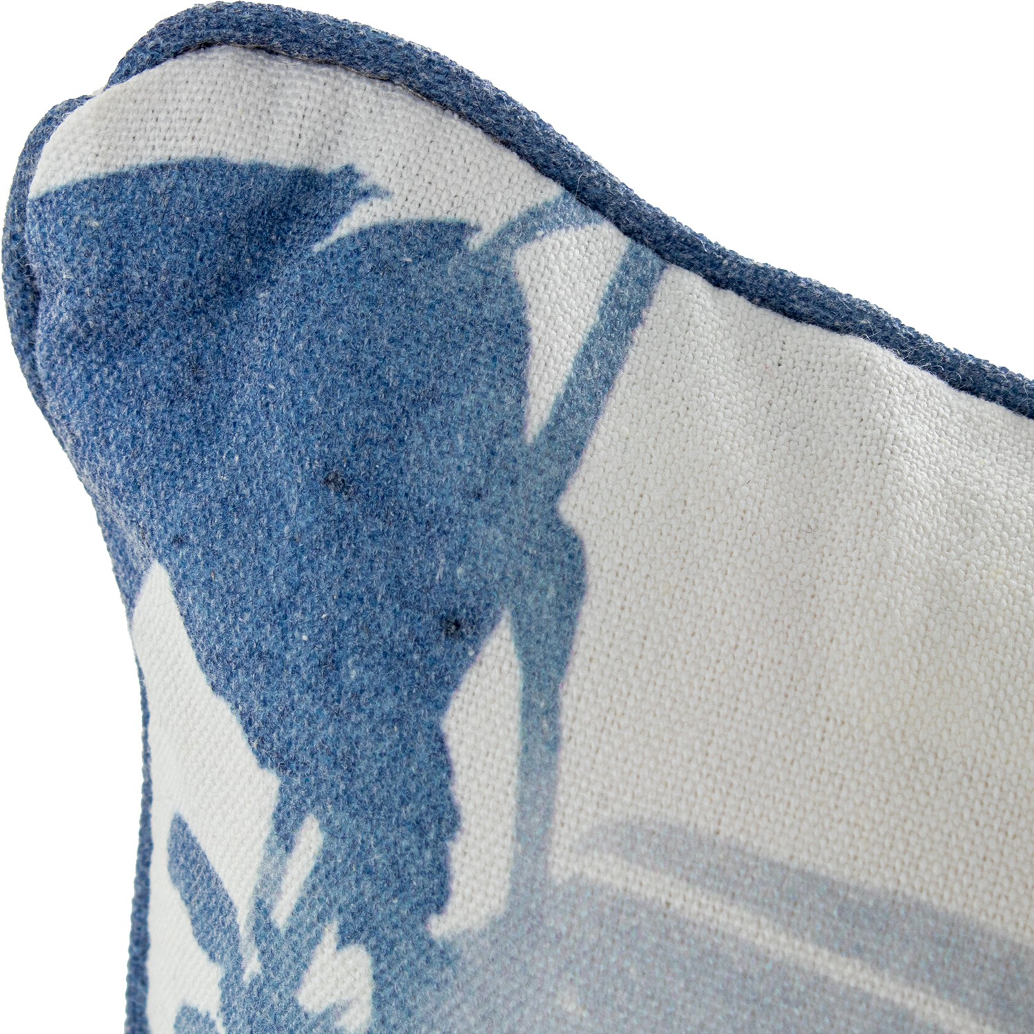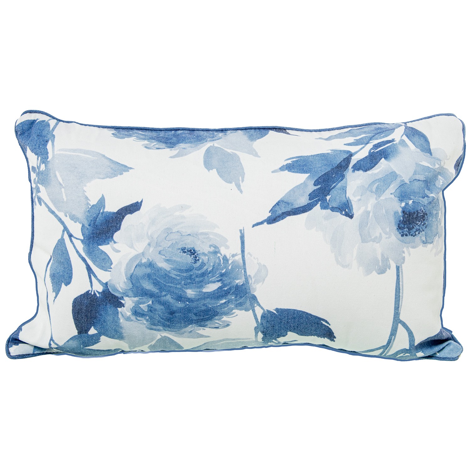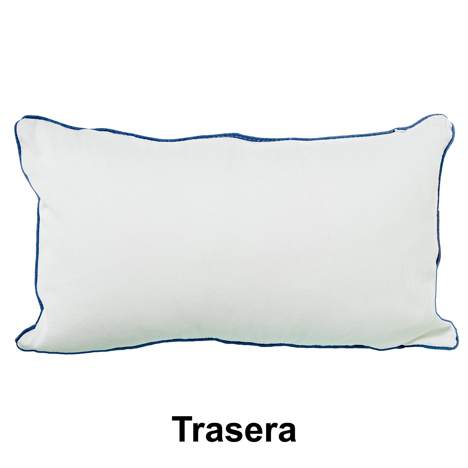 Cojín 50x30cm Blanco Flores Azules 80% Poliéster 20% Algodón 45x45cm, Con Cremallera