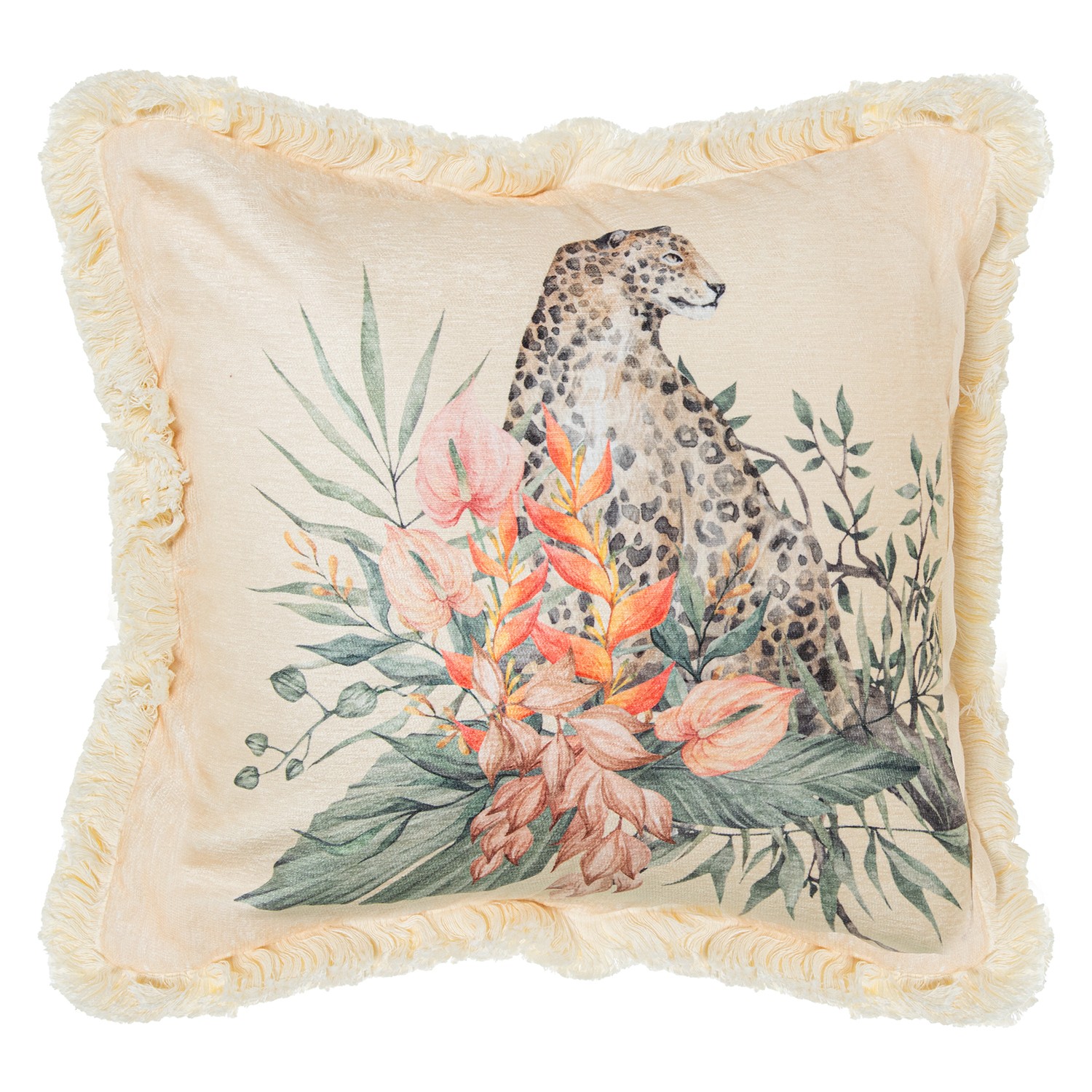 Cojín 45x45cm Beige Leopardo 100% Poliéster 45x45cm, Con Cremallera
