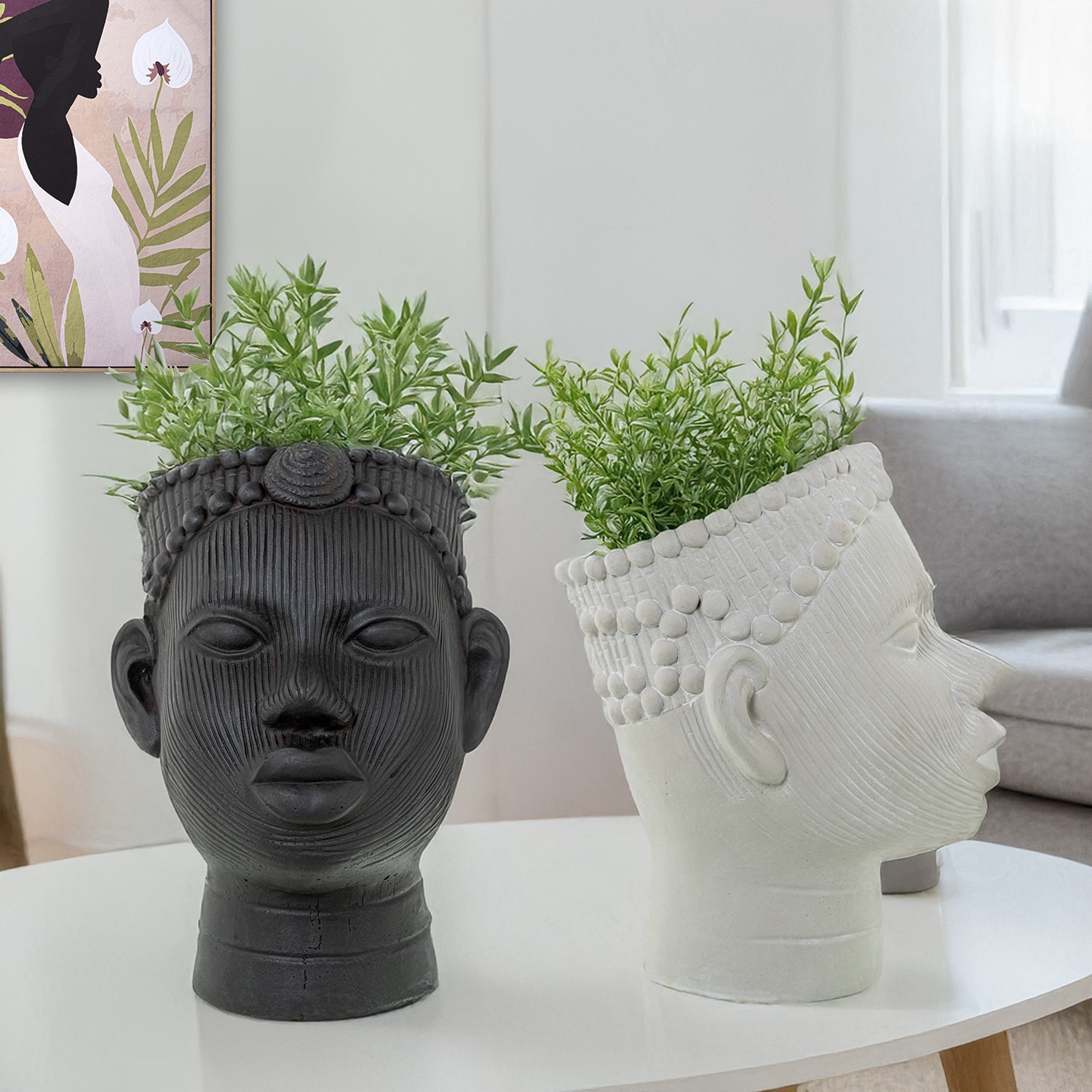 Macetero Cerámica Negra Rostro Africana 22x19x26cm