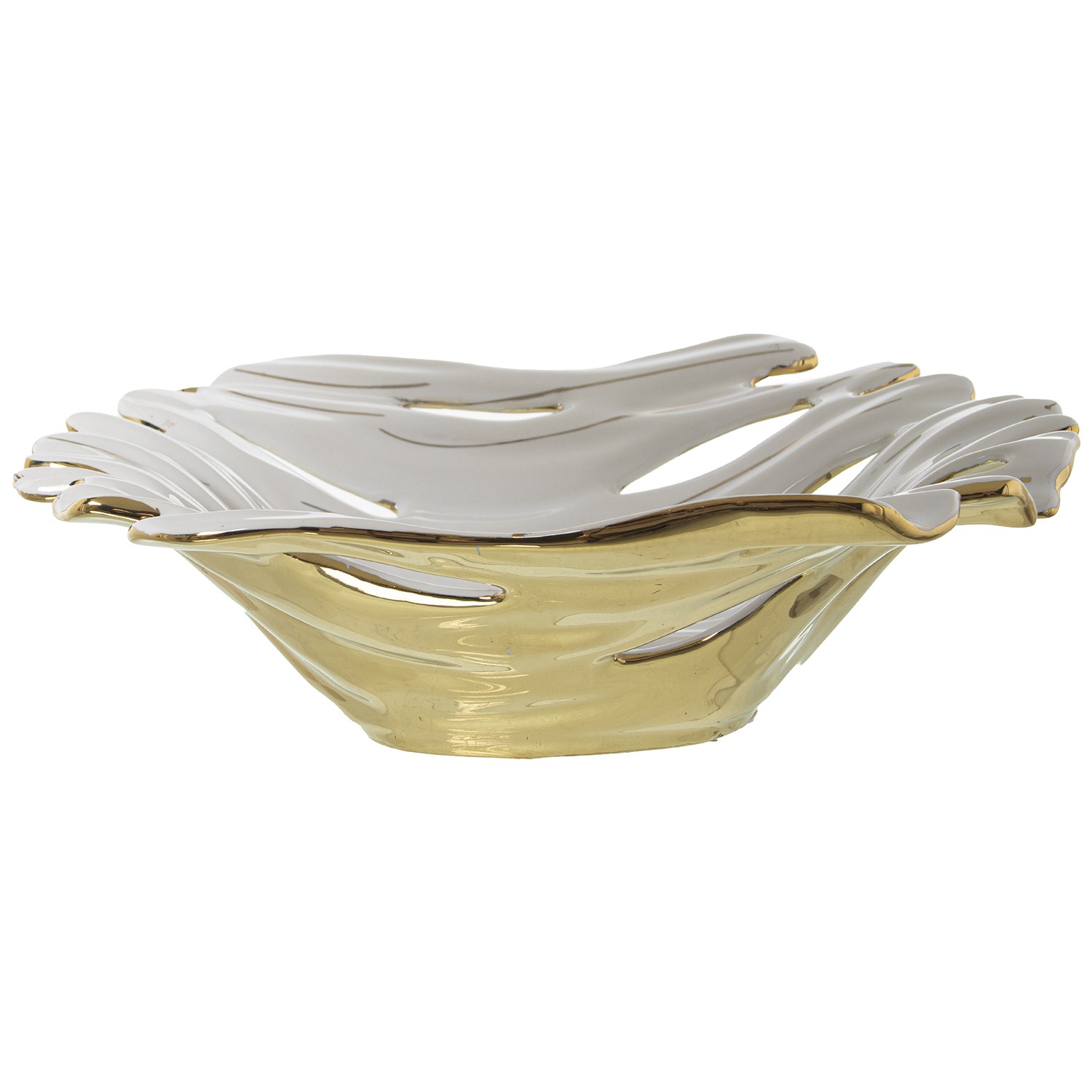 Centro Cerámica Blanco/dorado 30x25x8cm