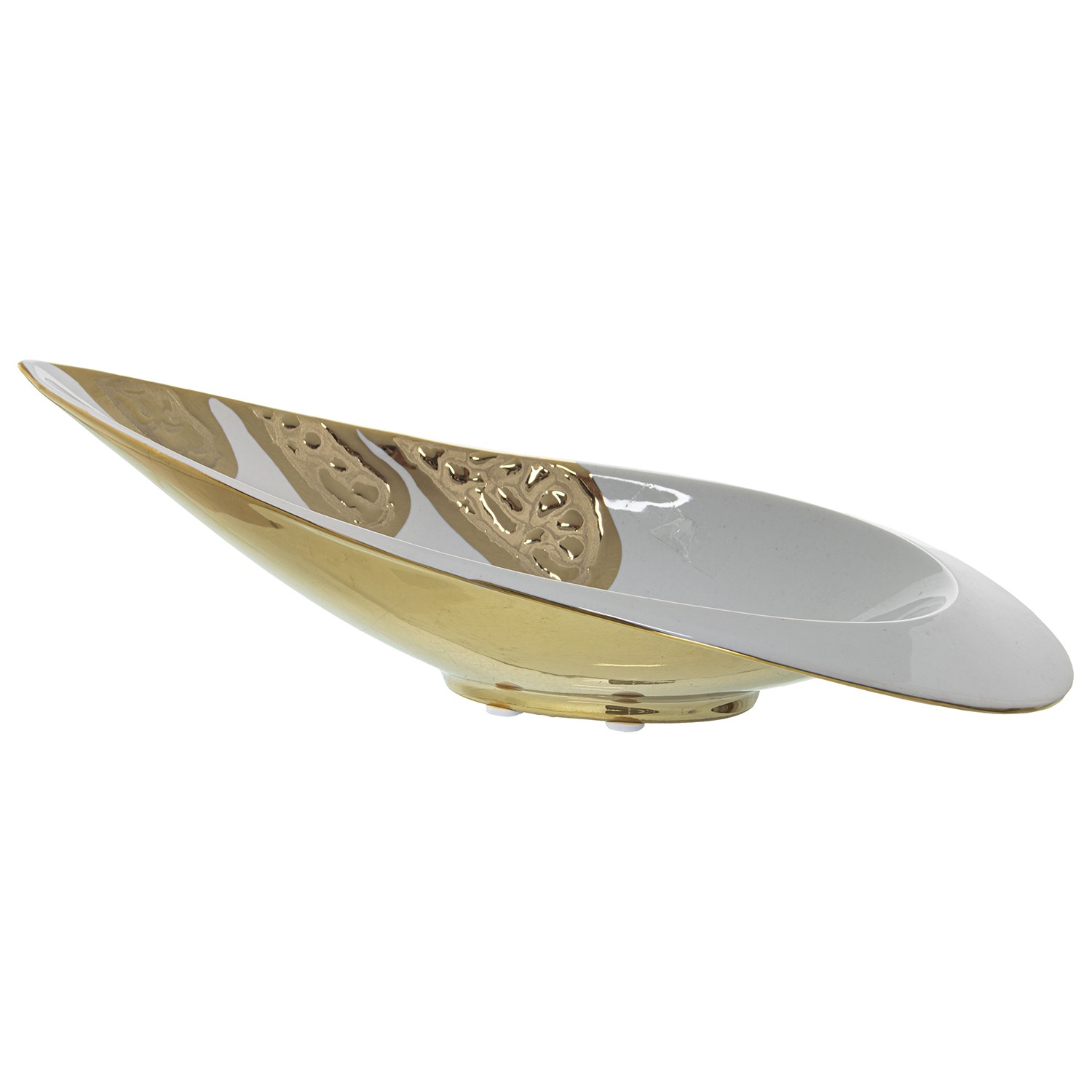 Centro Cerámica Blanca/dorada 28x12x9cm
