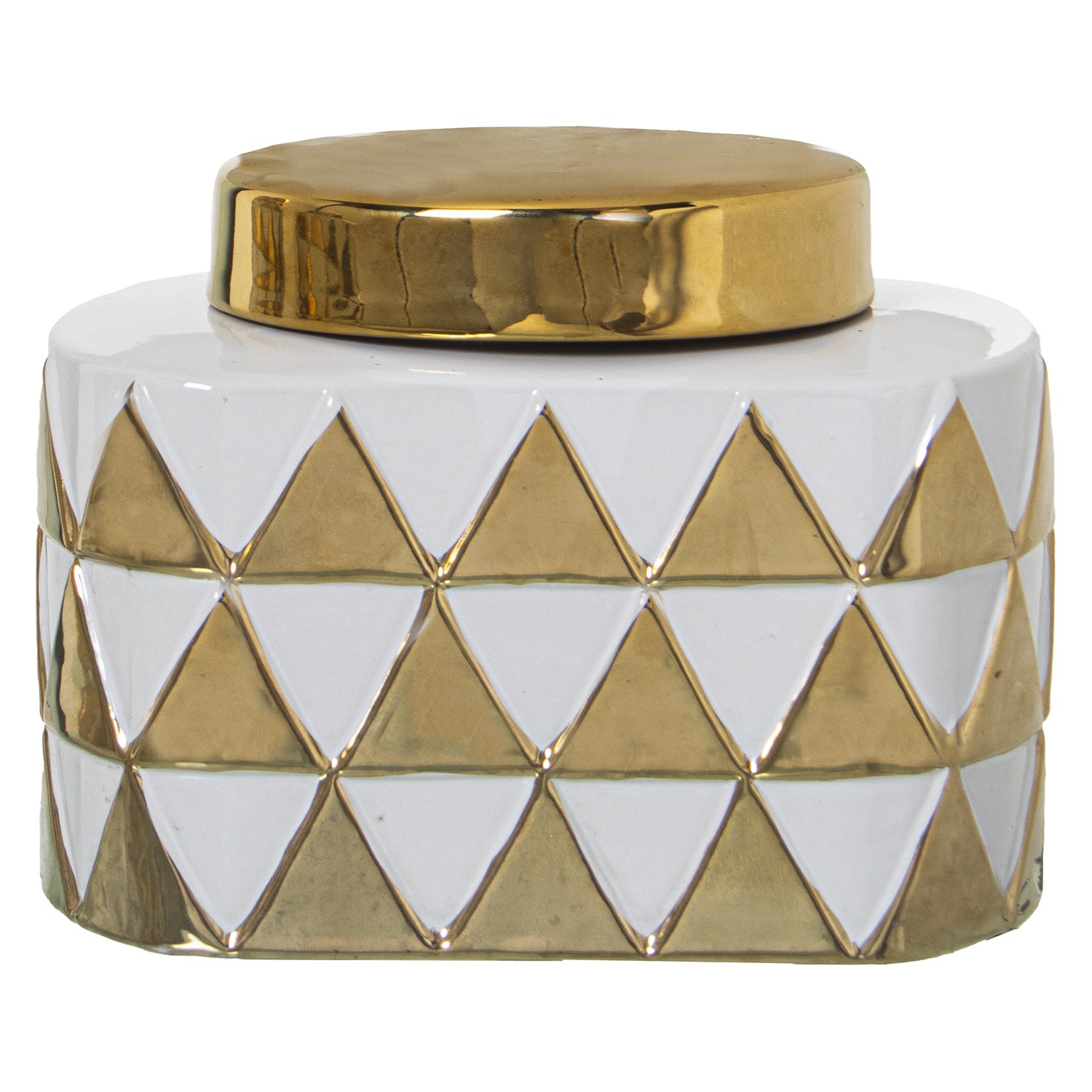 Tibor Cerámica Triángulos Blanco/oro 12x14x18cm